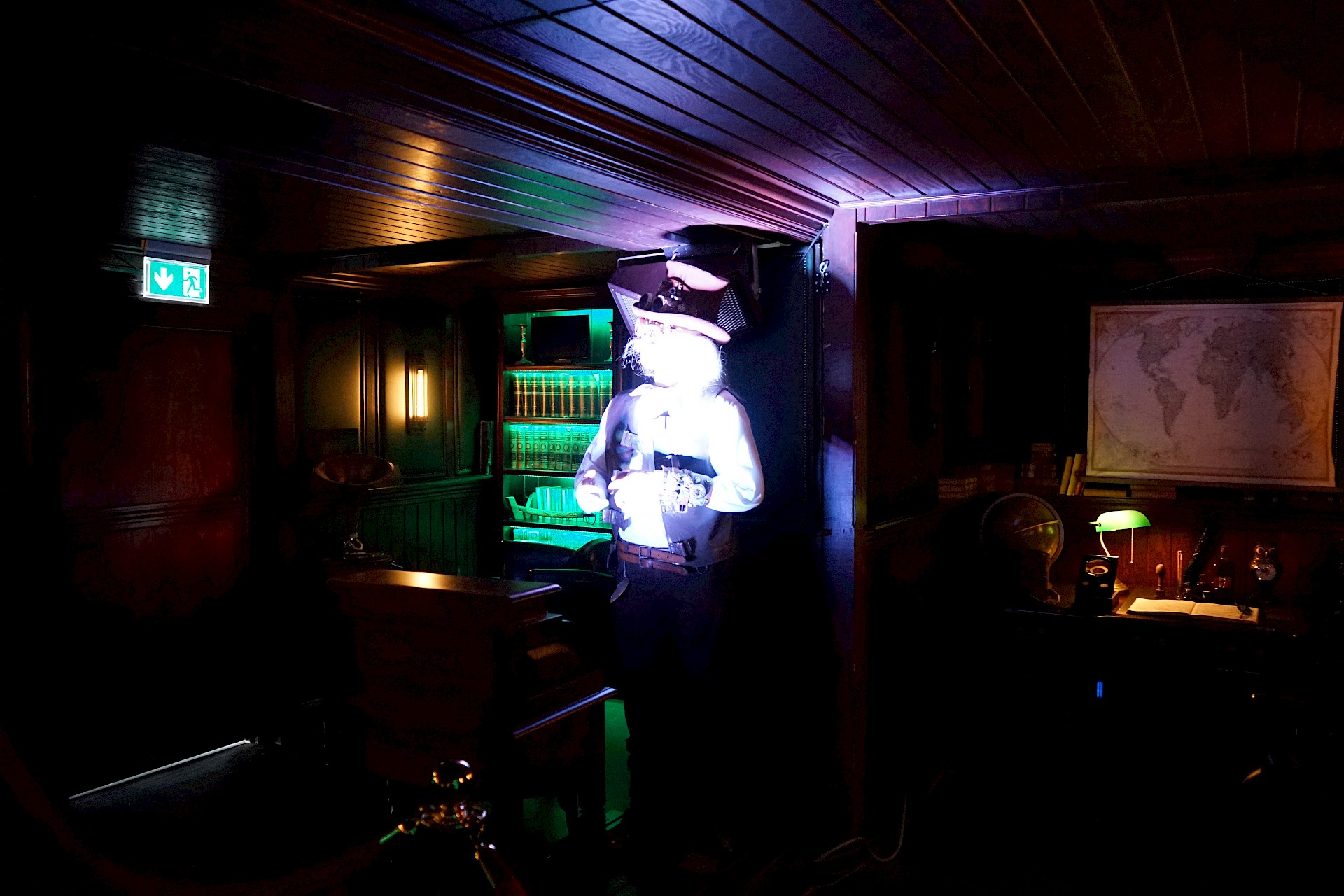 Vor der eigentlichen Fahrt werden die Besucher zunächst in einer Bibliothek von zwei Animatronics, also bewegten Figuren, auf die Fahrt eingestimmt und nach dem Ausstieg folgt noch ein kleiner Wasserhindernispacours, der allerdings nicht so recht zum Gesamterlebnis passen will.