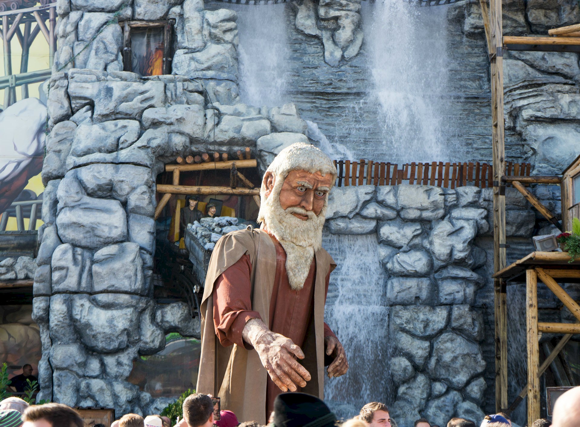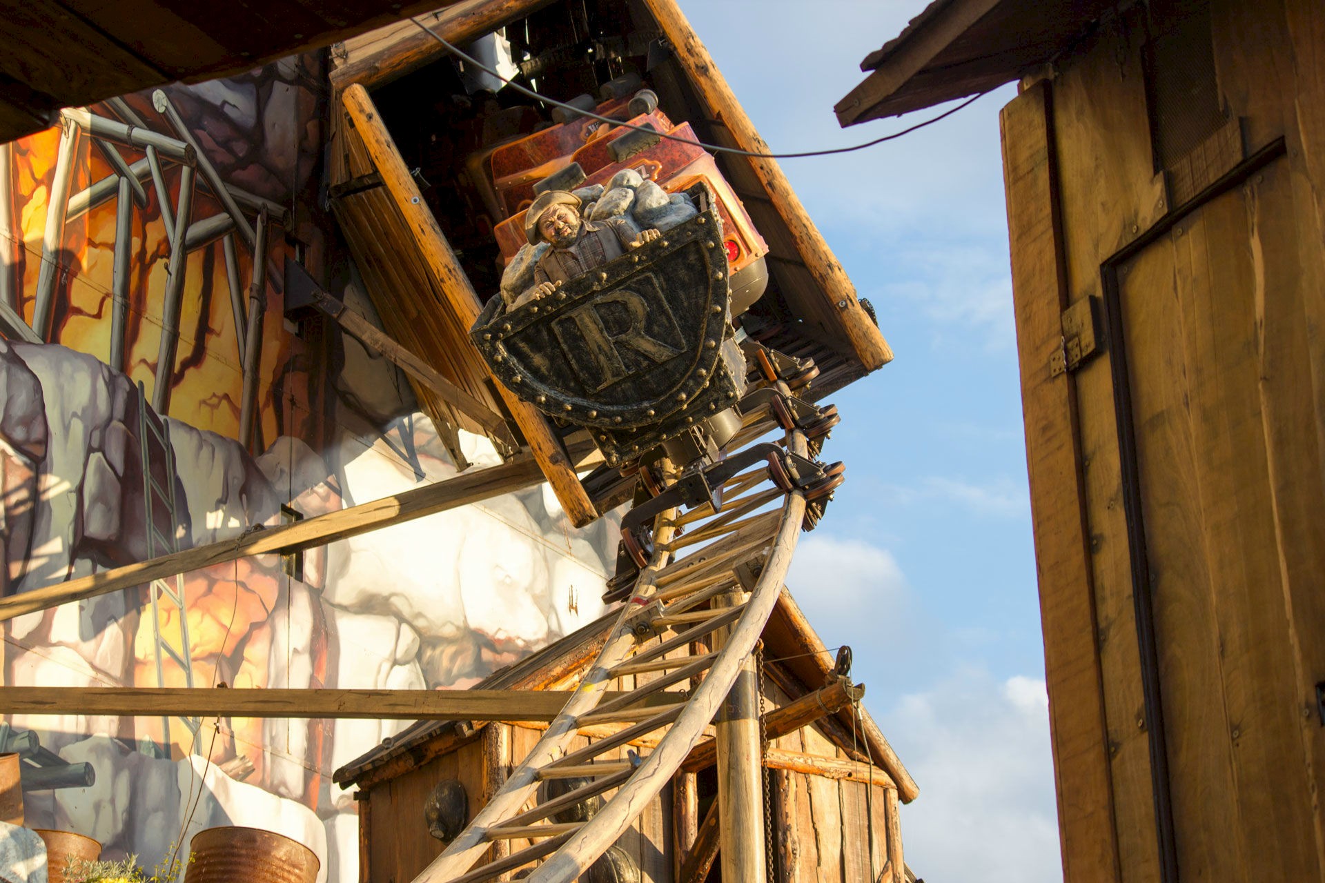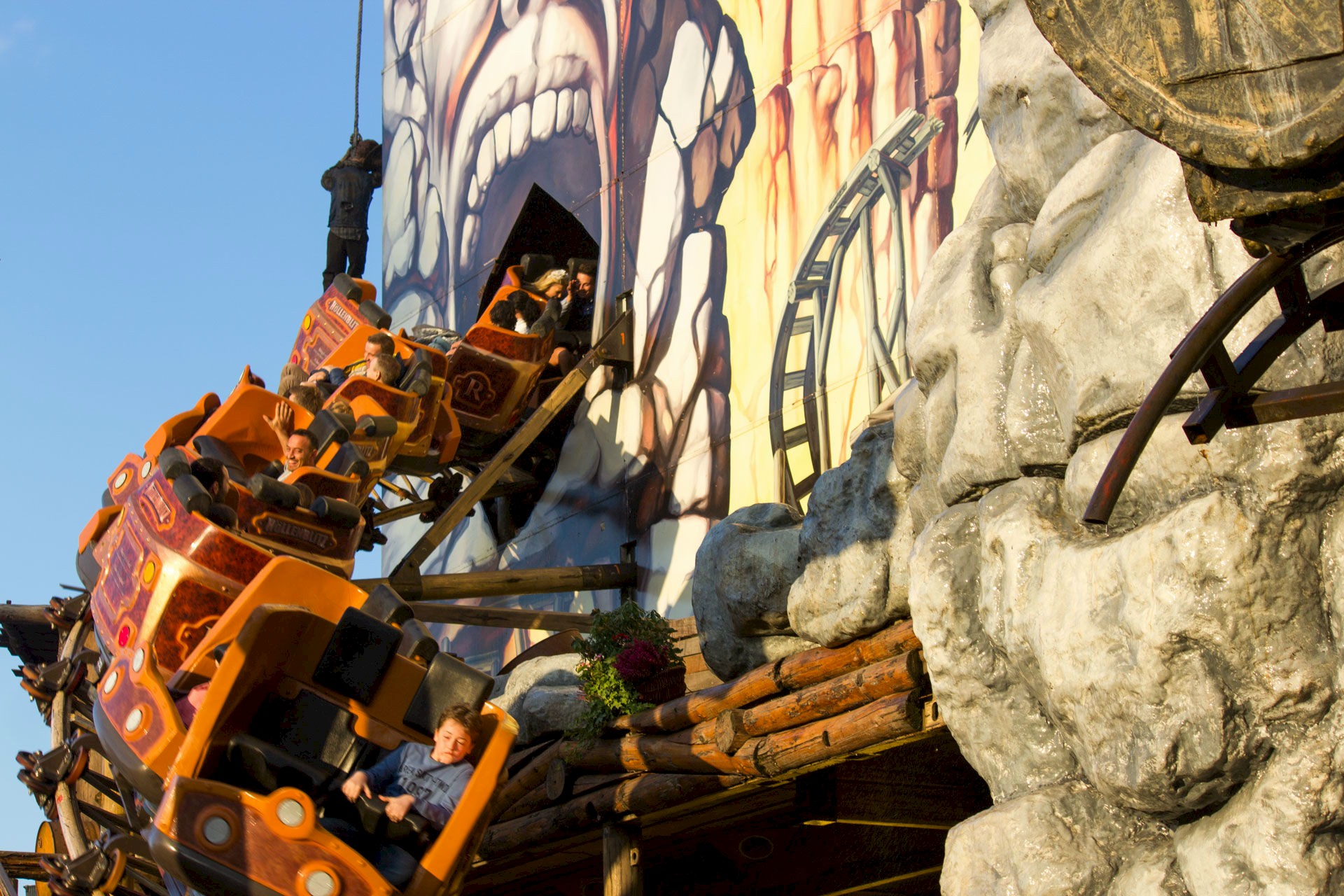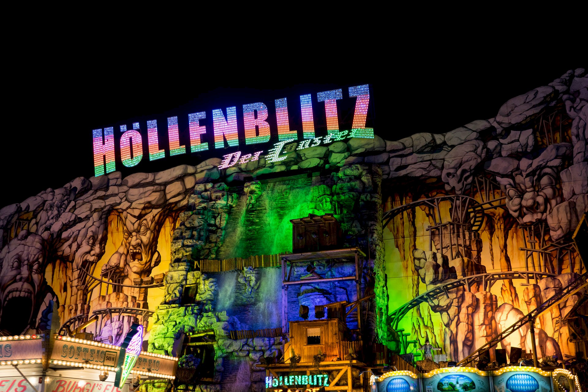 Hinter der beeindruckend großen und plastischen Fassade verbirgt sich die dritte Version der größten transportablen Dunkelachterbahn der Welt. Der Höllenblitz wurde ins Ausland verkauft und wird nicht auf die Wiesnzurückkehren. Imposant mutet er an, der Höllenblitz. Die größte transportable Dunkelachterbahn der Welt ist außen aufwendig im Stile einer Mine thematisiert und bietet im Inneren zahlreiche Lichteffekte, deren Zusammenhang mit dem Minenthema sich aber nicht gerade aufdrängt. Die zweite große Besonderheit neben der Tatsache, dass die Fahrt in einer Halle stattfindet, sind die Züge, deren einzelnen Gondeln sich frei um die eigene Achse drehen. Seit 2007 dreht das Fahrgeschäft seine Runden auf der Wiesn, sein Kern allerdings stammt aus dem Jahr 1992. Damals bestellten die Renoldis den Magic Mountain bei Gerstlauer. 1998 wurde selbiger zu Star World umgestaltet und Urwaldthema samt Riesenaffen wurden gegen Weltraumthema und Riesengalaktor ausgetauscht. Seit der neuerlichen optischen Umgestaltung 2007 ist nun der Höllenblitz auf der Reise. Eine Auffrischung der Strecke brachte diese leider nicht mit sich. So muss der Fahrgast während der 860 Meter langen Fahrt mit großer Wahrscheinlichkeit den oder anderen Schlag der Bahn hinnehmen.