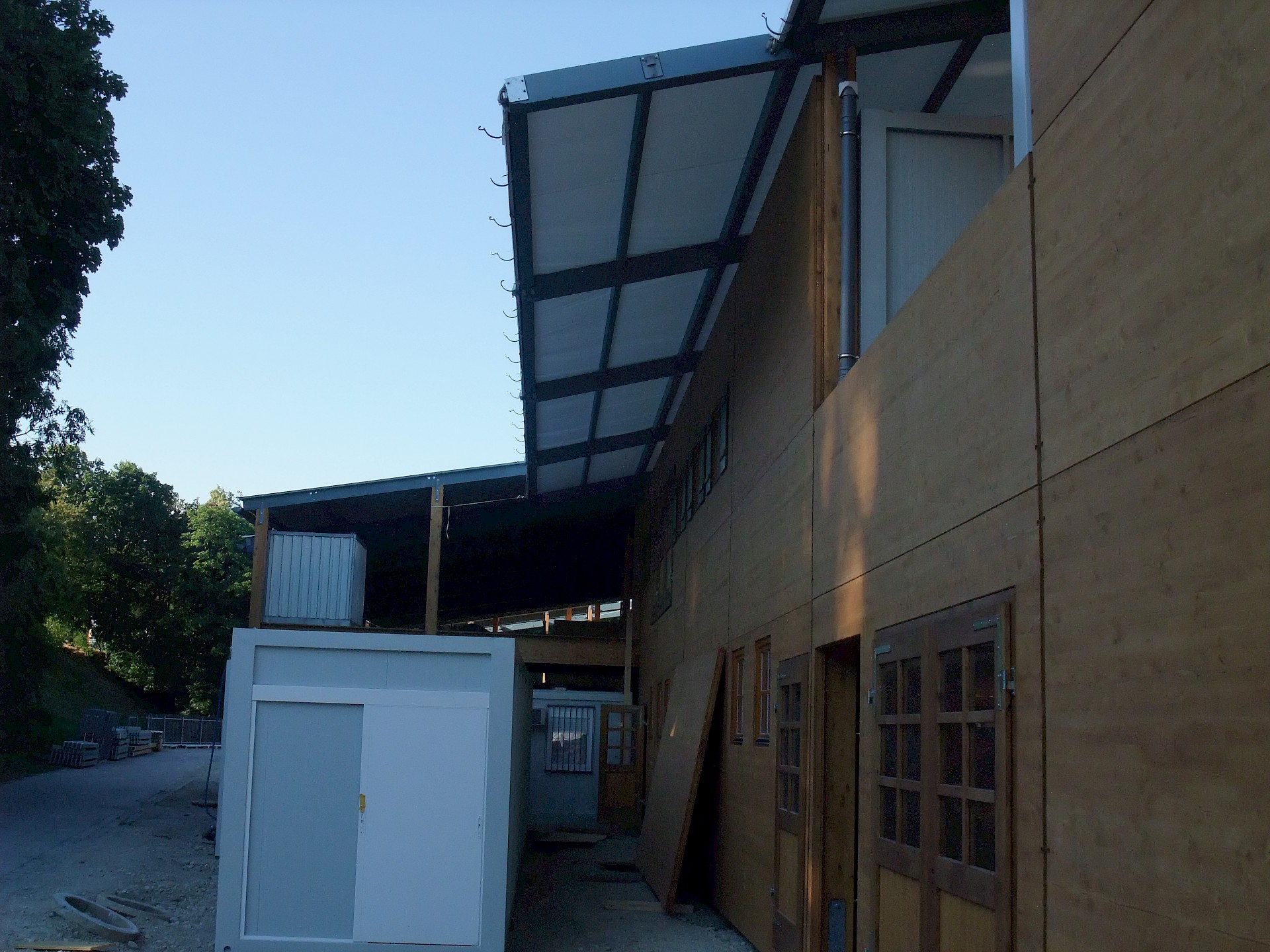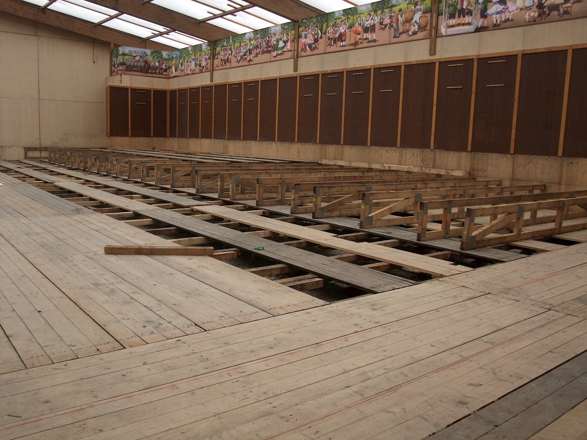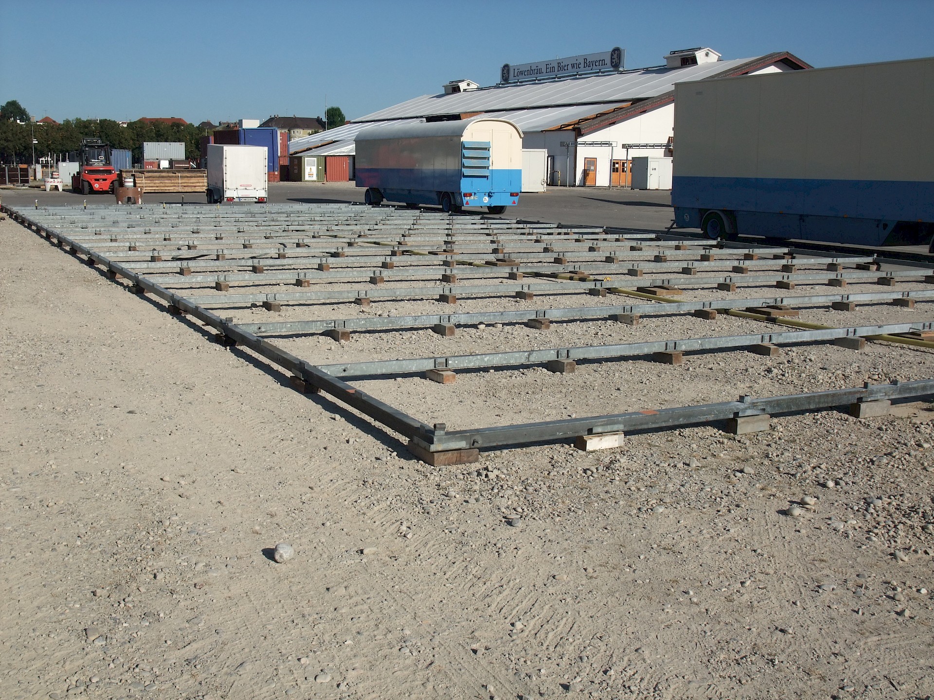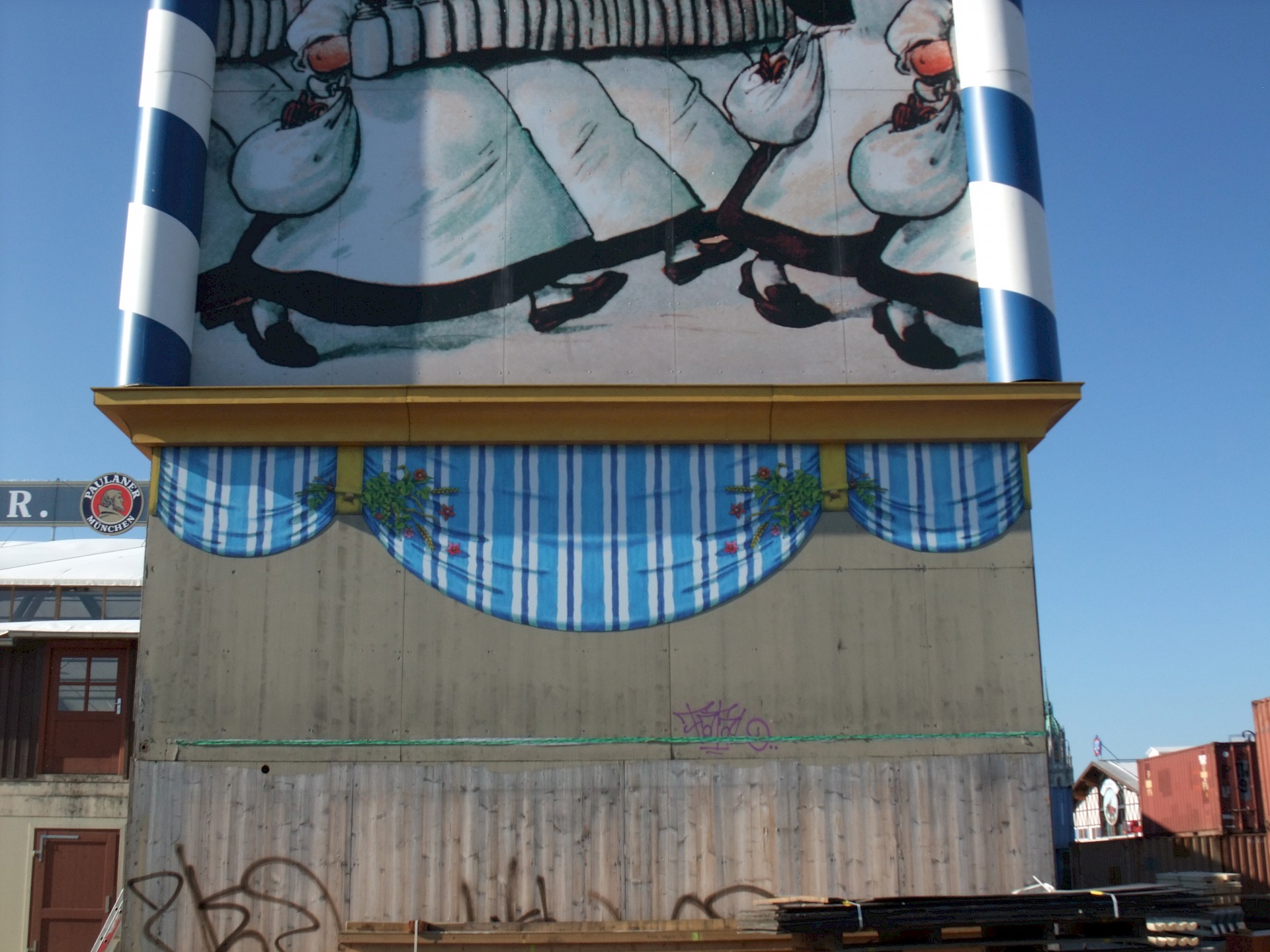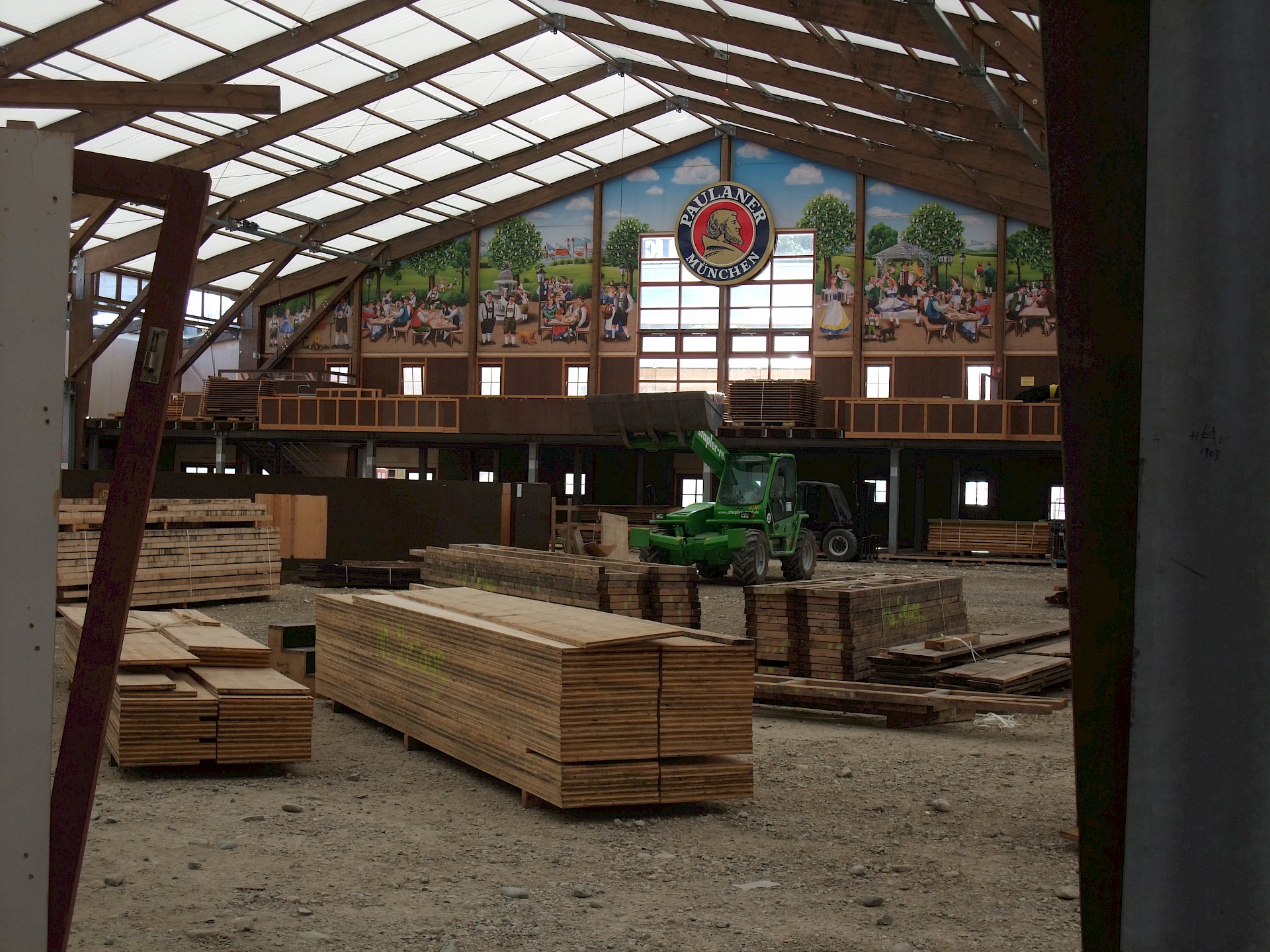 Während das Hofbräuzelt inzwischen seine Krönung erfahren hat und auch der Aloisius bereits über den Innenausbau wacht, hat die Fischer-Vroni noch nicht einmal eine Front.