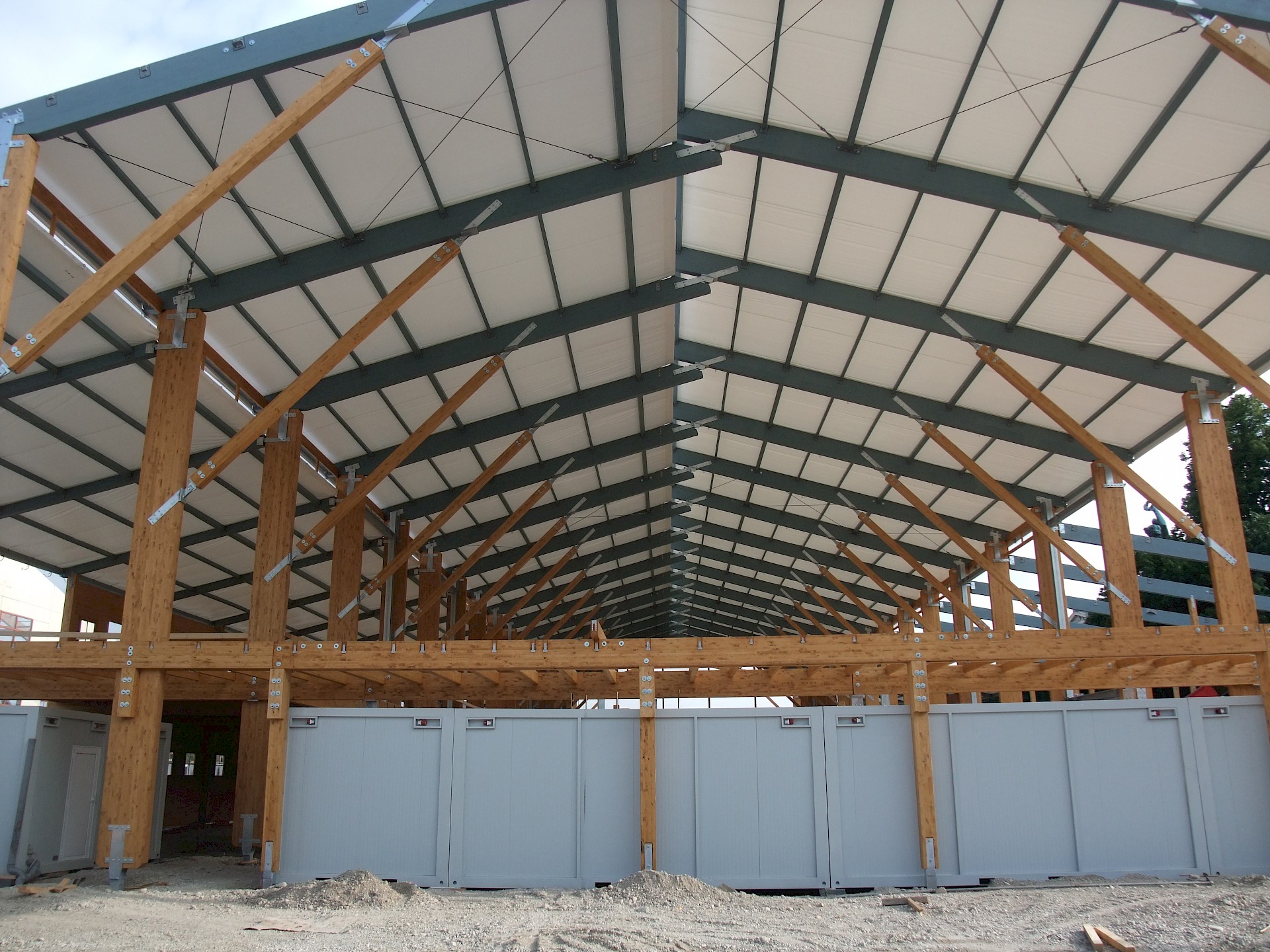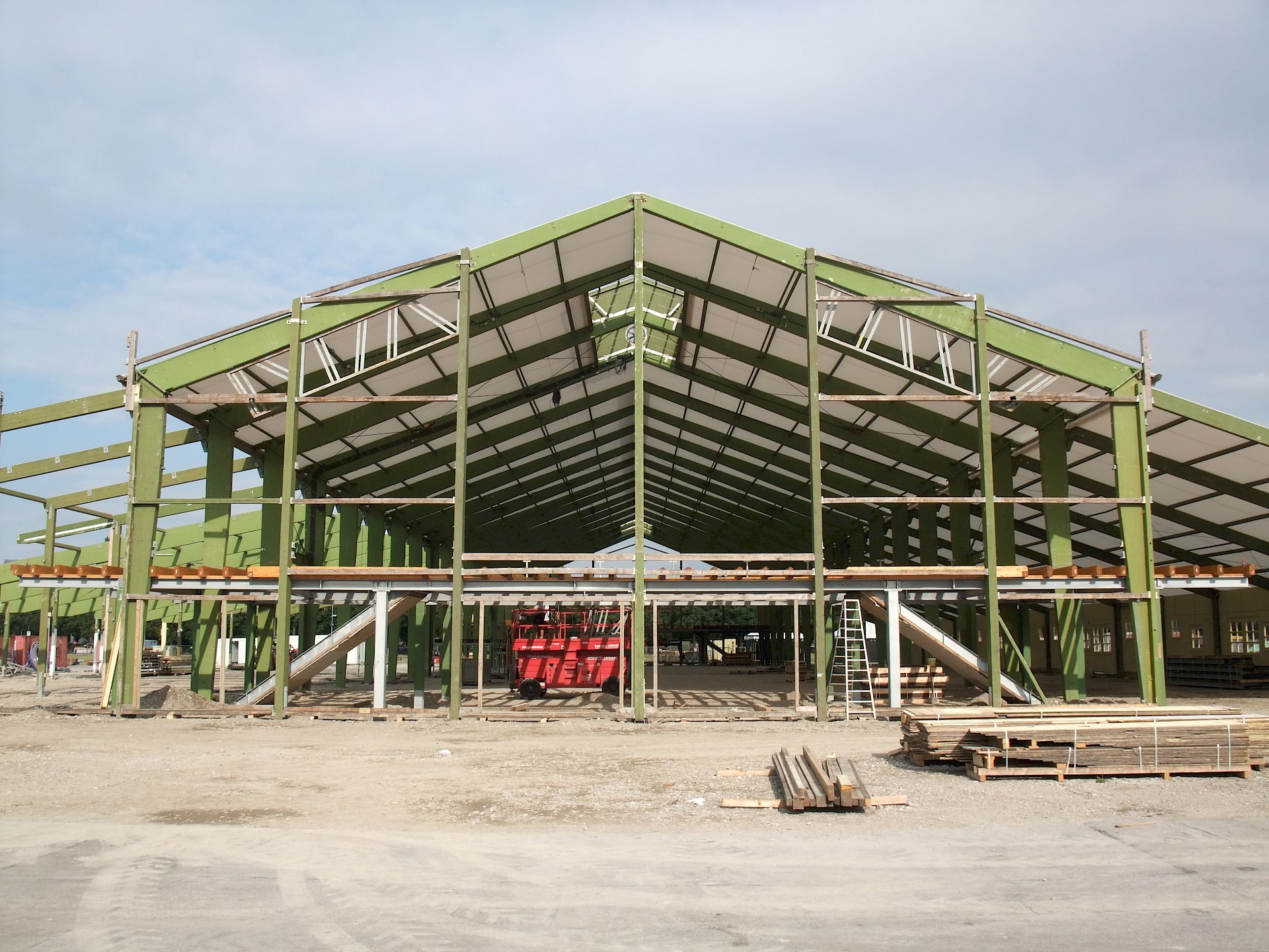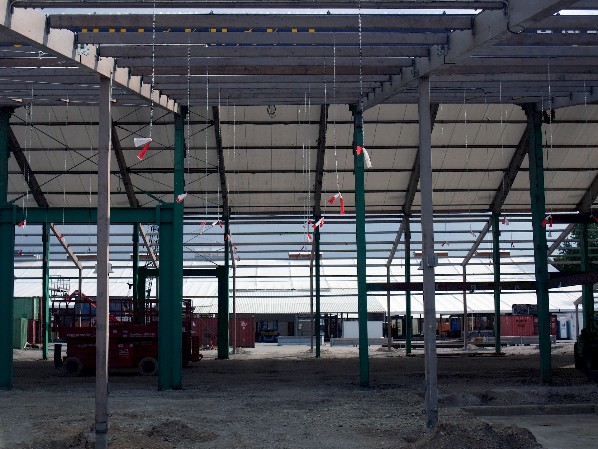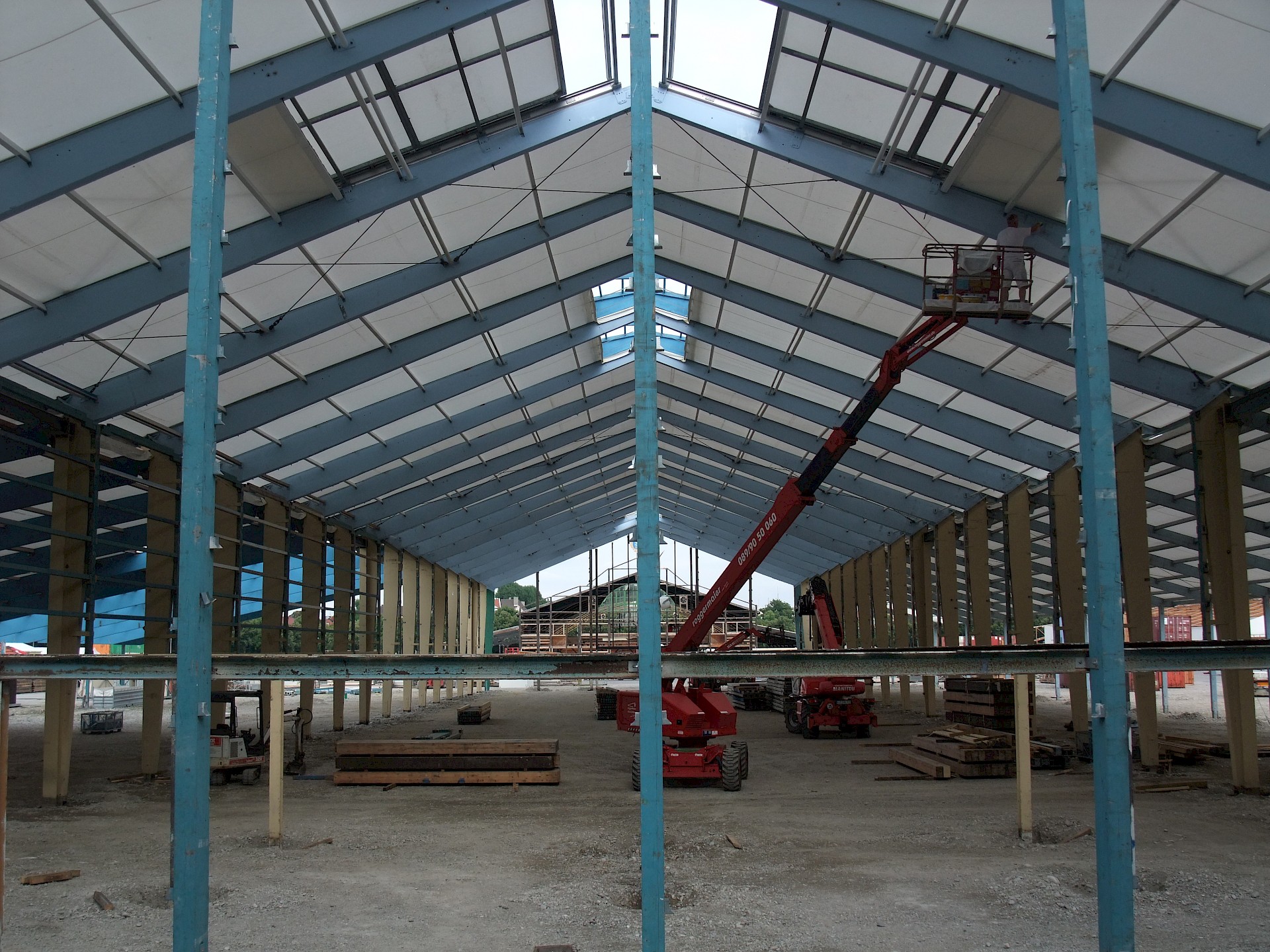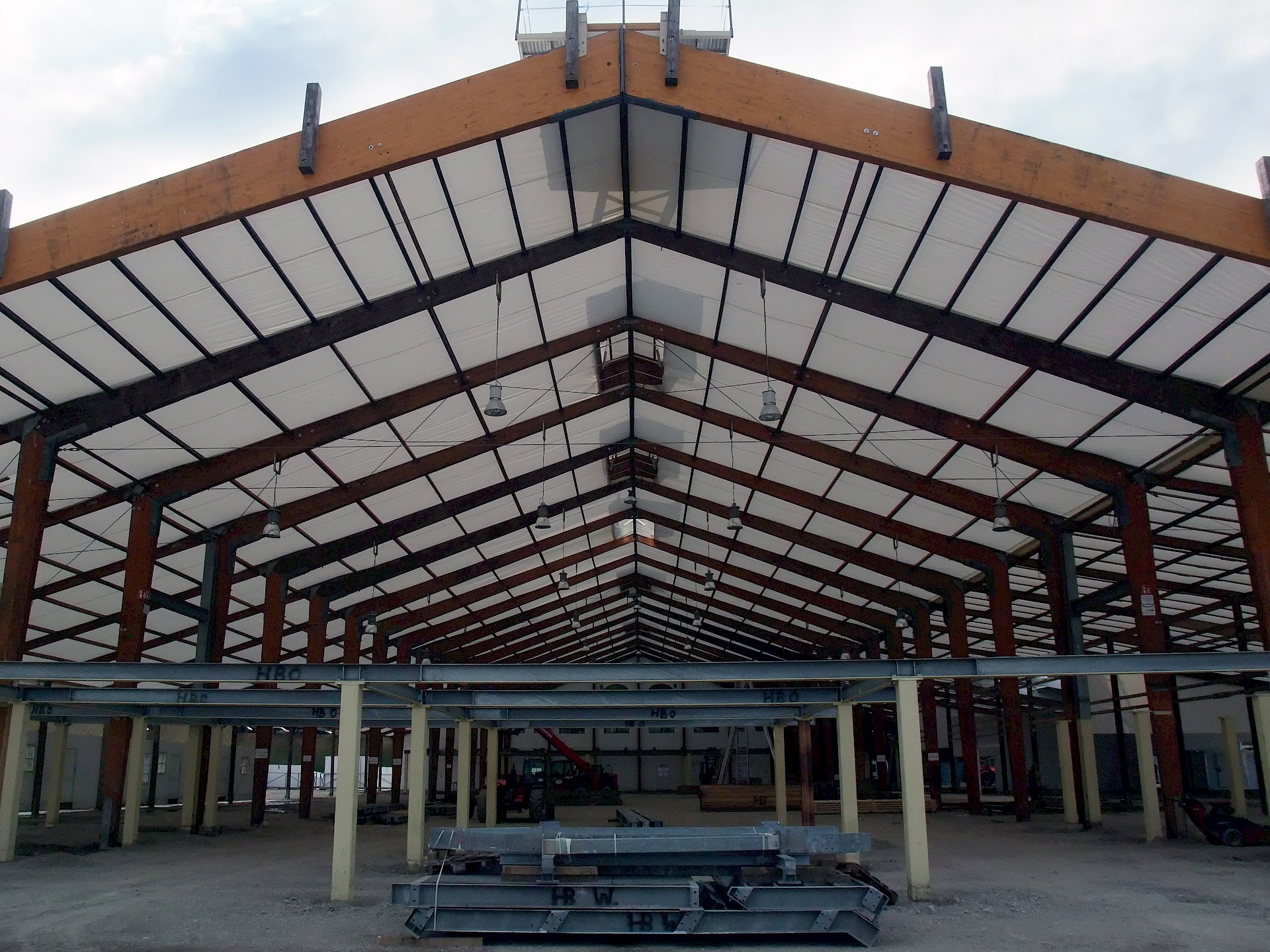 In der zweiten Aufbauwoche nimmt das neue Schützenzelt Form an und wirkt recht wuchtig. Ab heuer gehört es schließlich auch zu den ganz Großen.