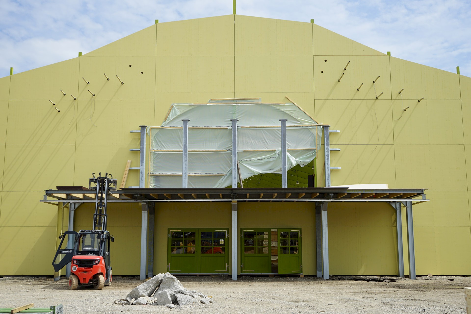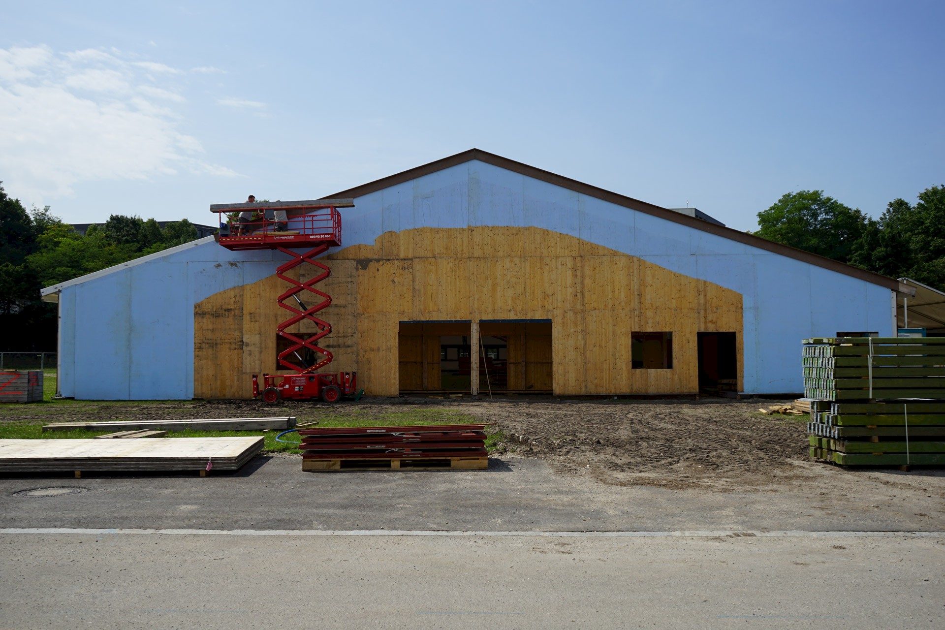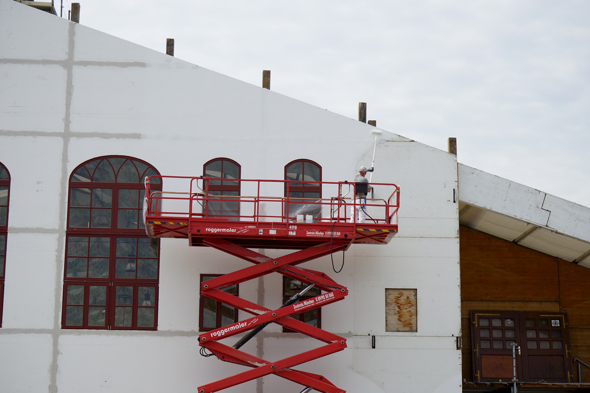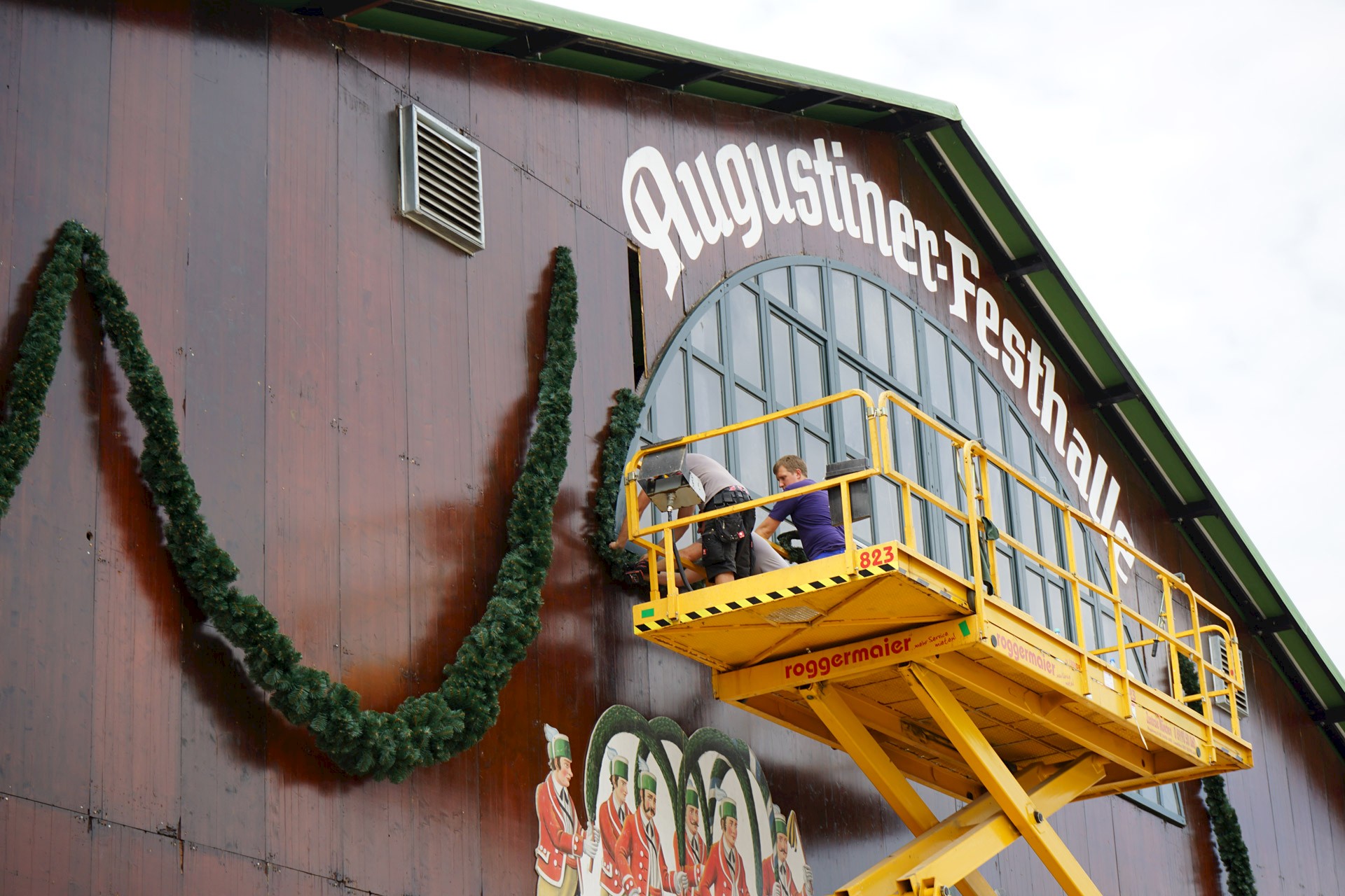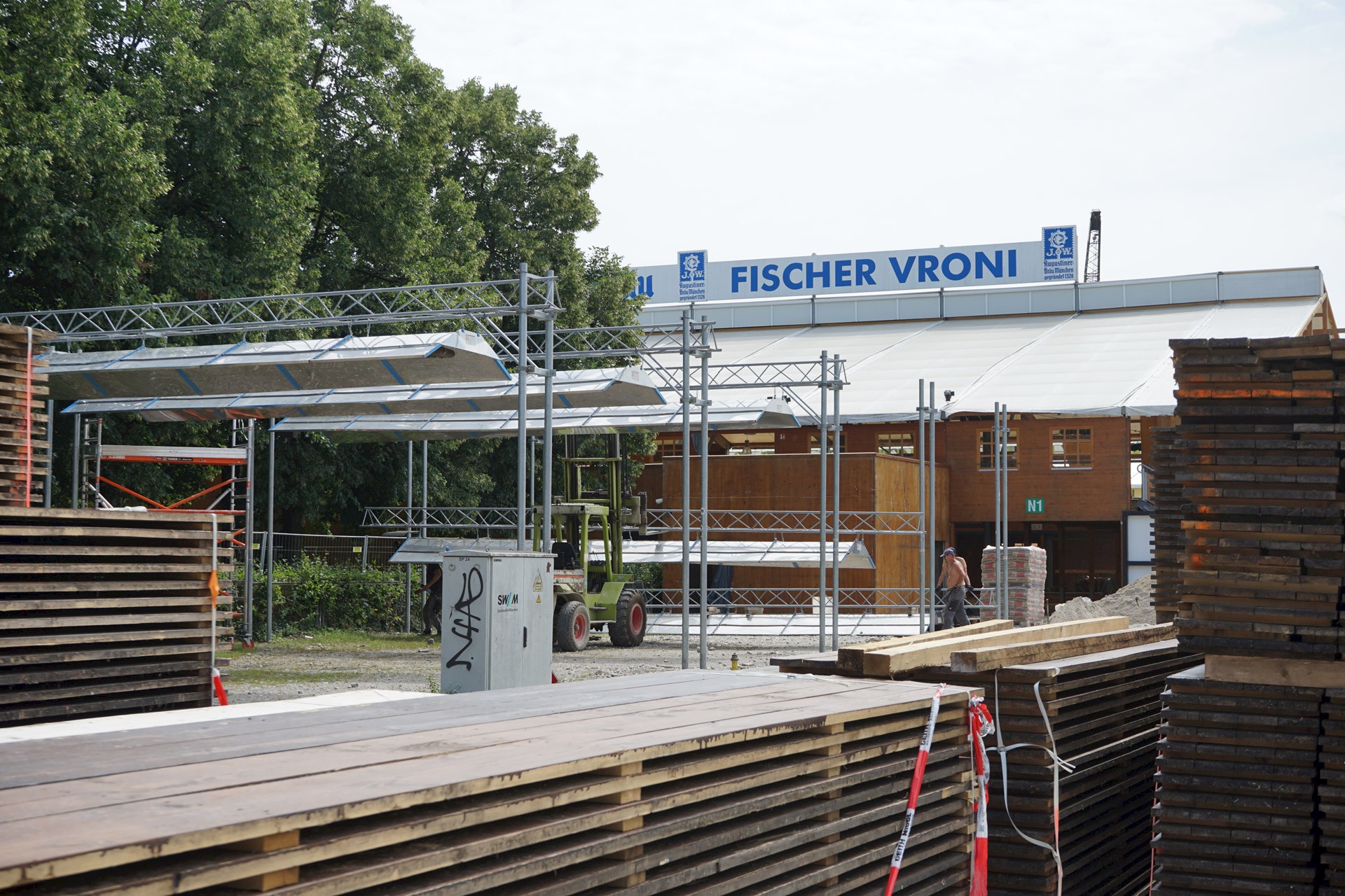 Seit Montag dürfen auch die kleinen Wiesnzelte mit dem Aufbau beginnen. Von den Hendlbratereien Ammer, Poschner und Goldener Hahn ist dies auch bereits genutzt worden. Die wenig traditionellen Container der Wildstuben sind bereits am zweiten Aufbautag zum größten Teil zusammengesteckt worden. Der Neubau der Ochsenbraterei (zur Webcam) lässt schön langsam erahnen, wie die Fassade ausschauen wird. Immerhin der geschwungene Schriftzug scheint wiederzukehren.