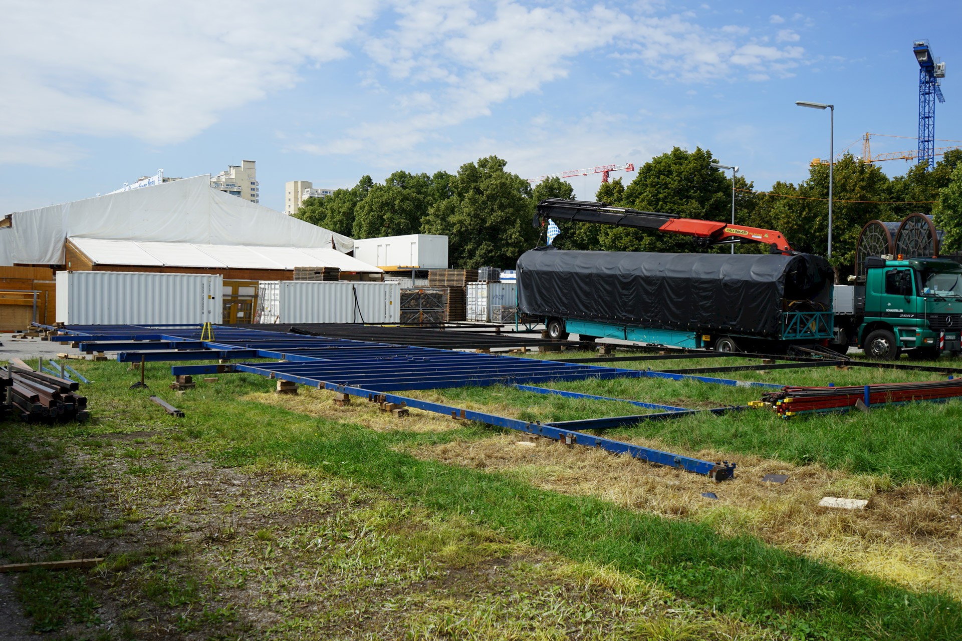 Sogar das erste Fahrgeschäft wird seit Montag aufgebaut.