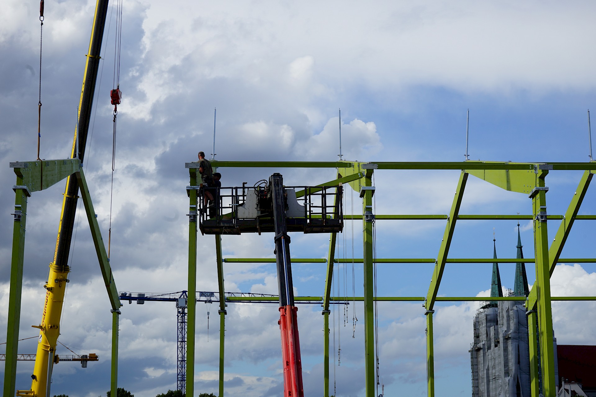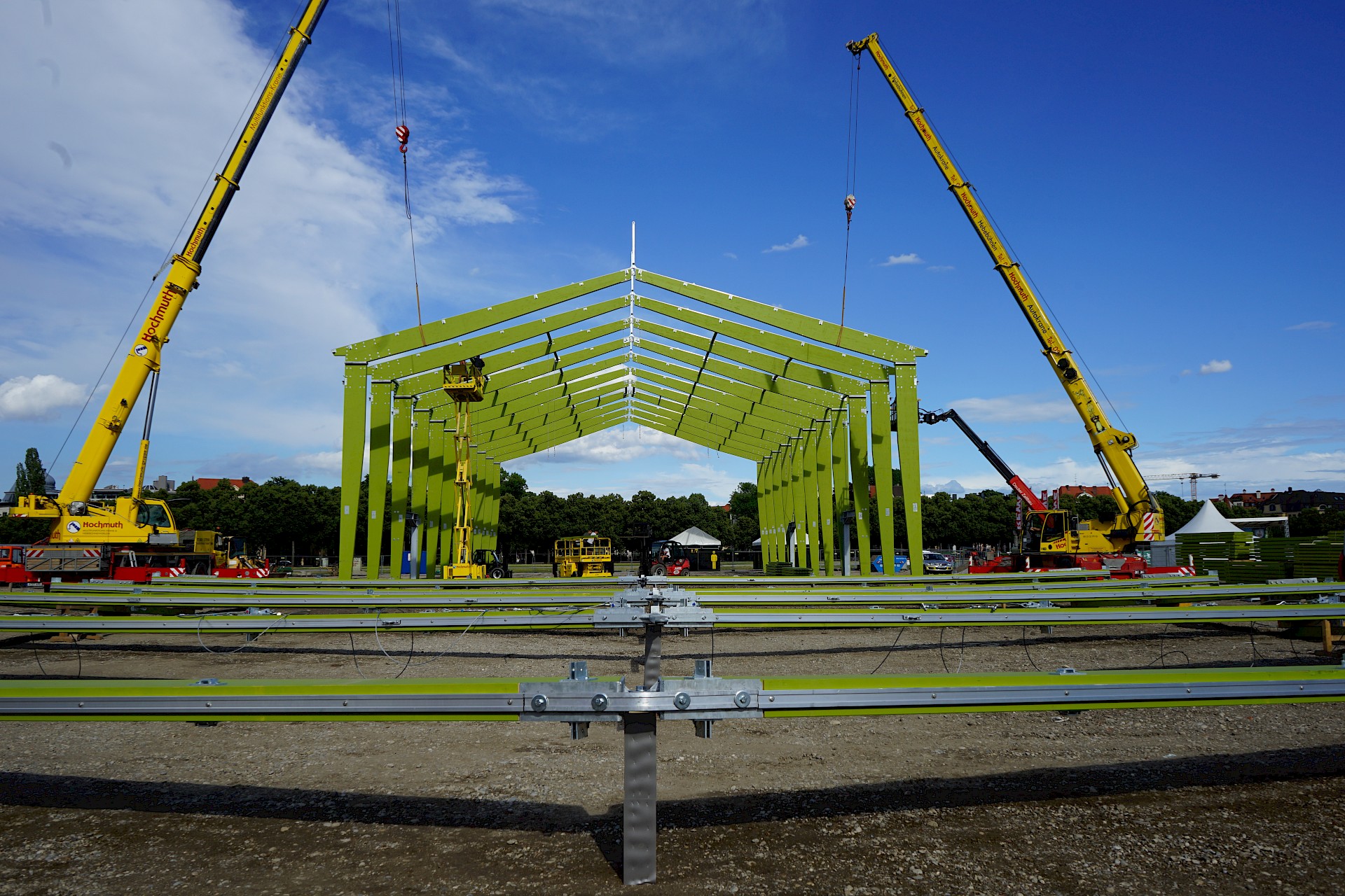 Dass an so einem Wiesnzelt einiges mehr als nur ein paar Bretter Holz und eine Zeltplane hängt, wird überdeutlich, wenn bereits Wochen vor dem eigentlichen Aufbaubeginn Mitte Juli Vorarbeiten erledigt werden müssen. 2017 wird nämlich die Ochsenbraterei komplett neu gebaut. Da sie zusätzlich um einige Meter südwärts verschoben wird, muss auch die gesamte Infrastruktur, also Fundamente und diverse Leitungen, neu angelegt werden.