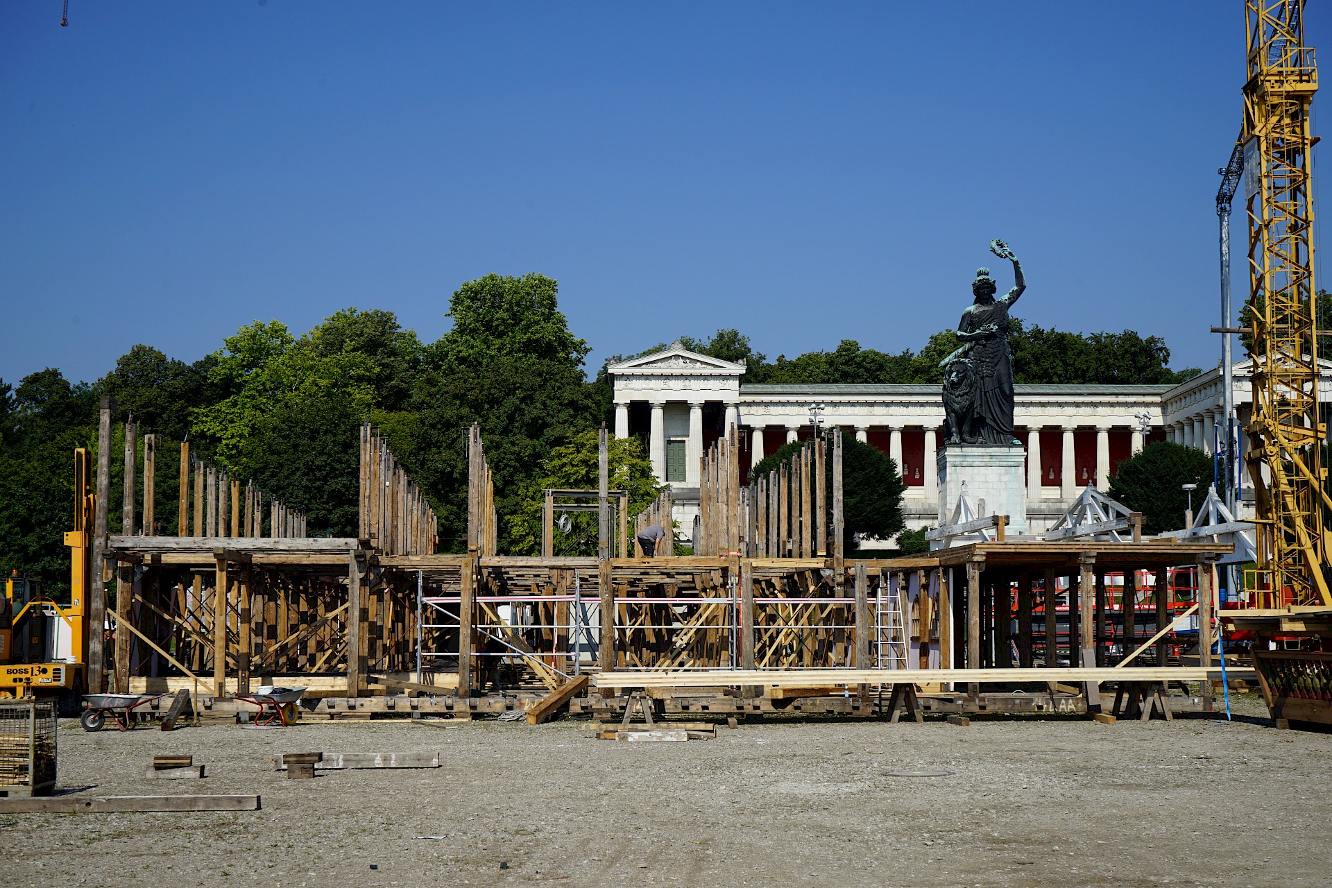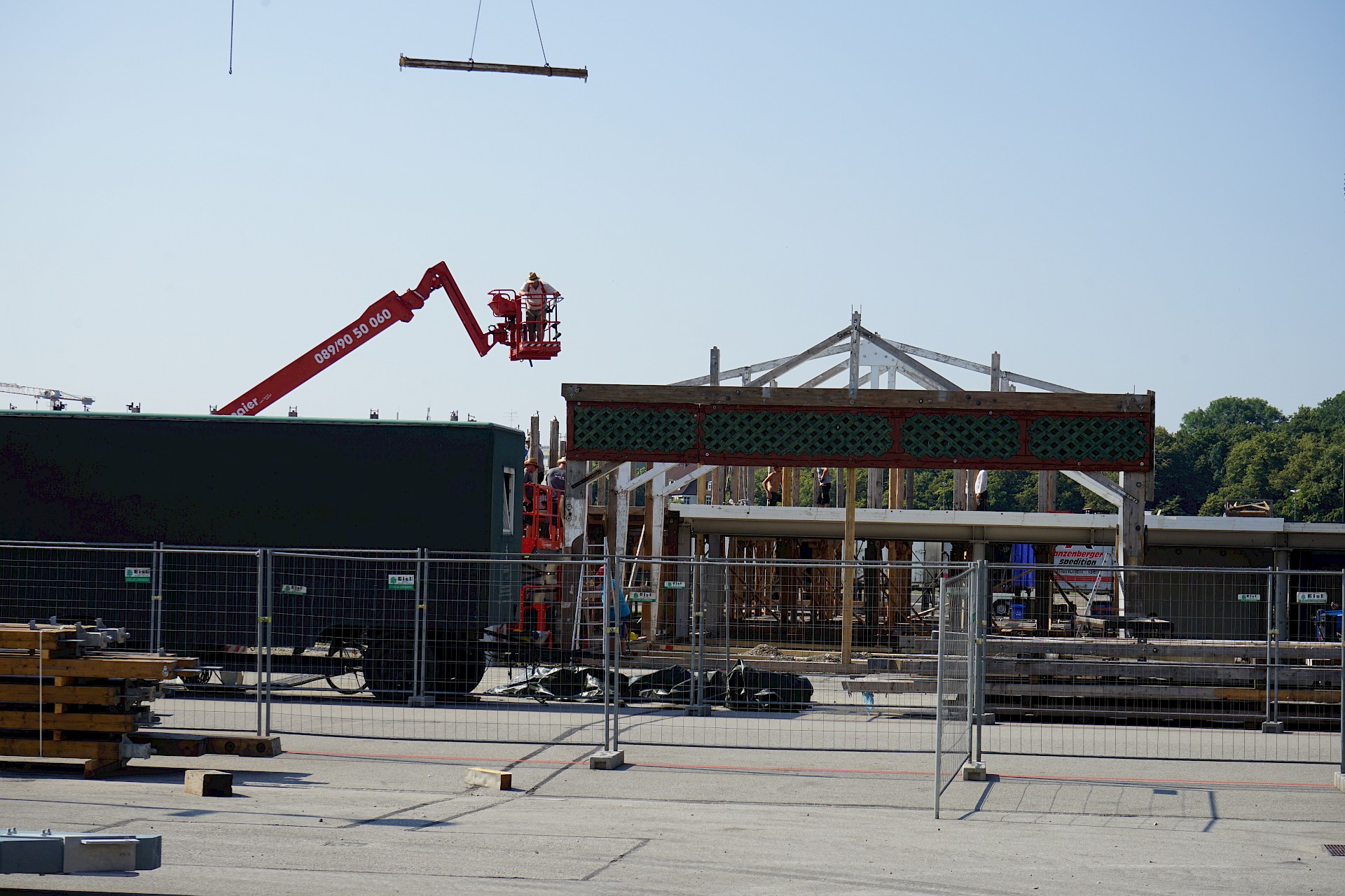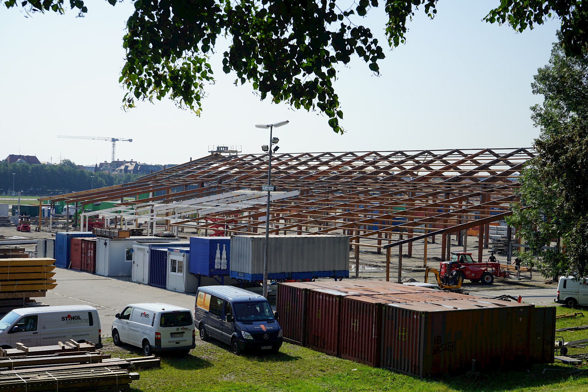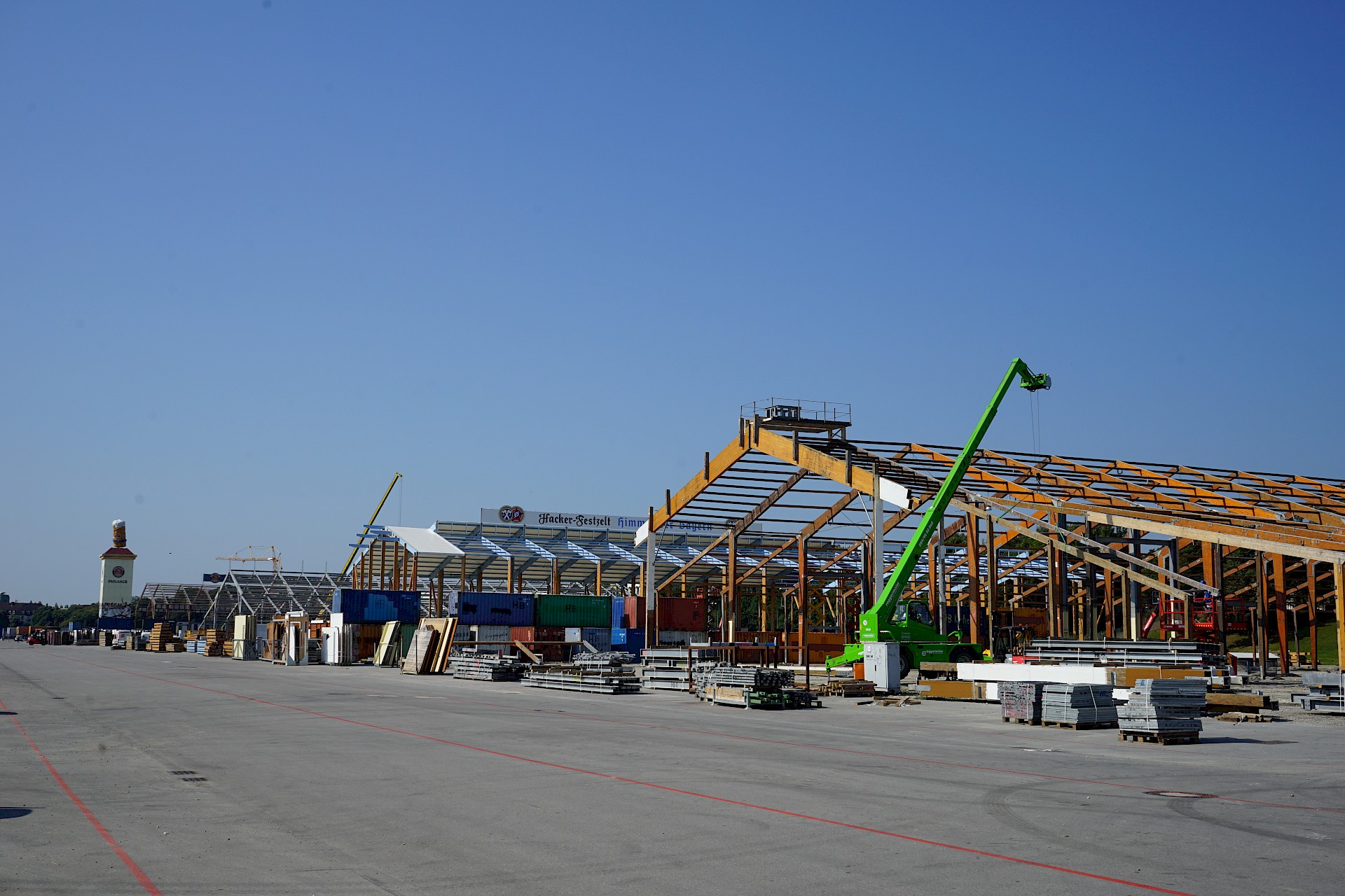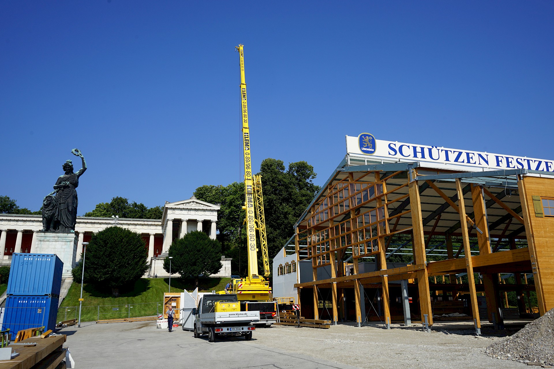 In der offiziell zweiten Aufbauwoche des Oktoberfestes 2018 zeigt sich das gewohnt Bild. Während einige Zelte erst ihr Mittelschiff präsentieren, sind andere bereits teilweise mit Außenwänden oder gar Zeltplanen versehen.