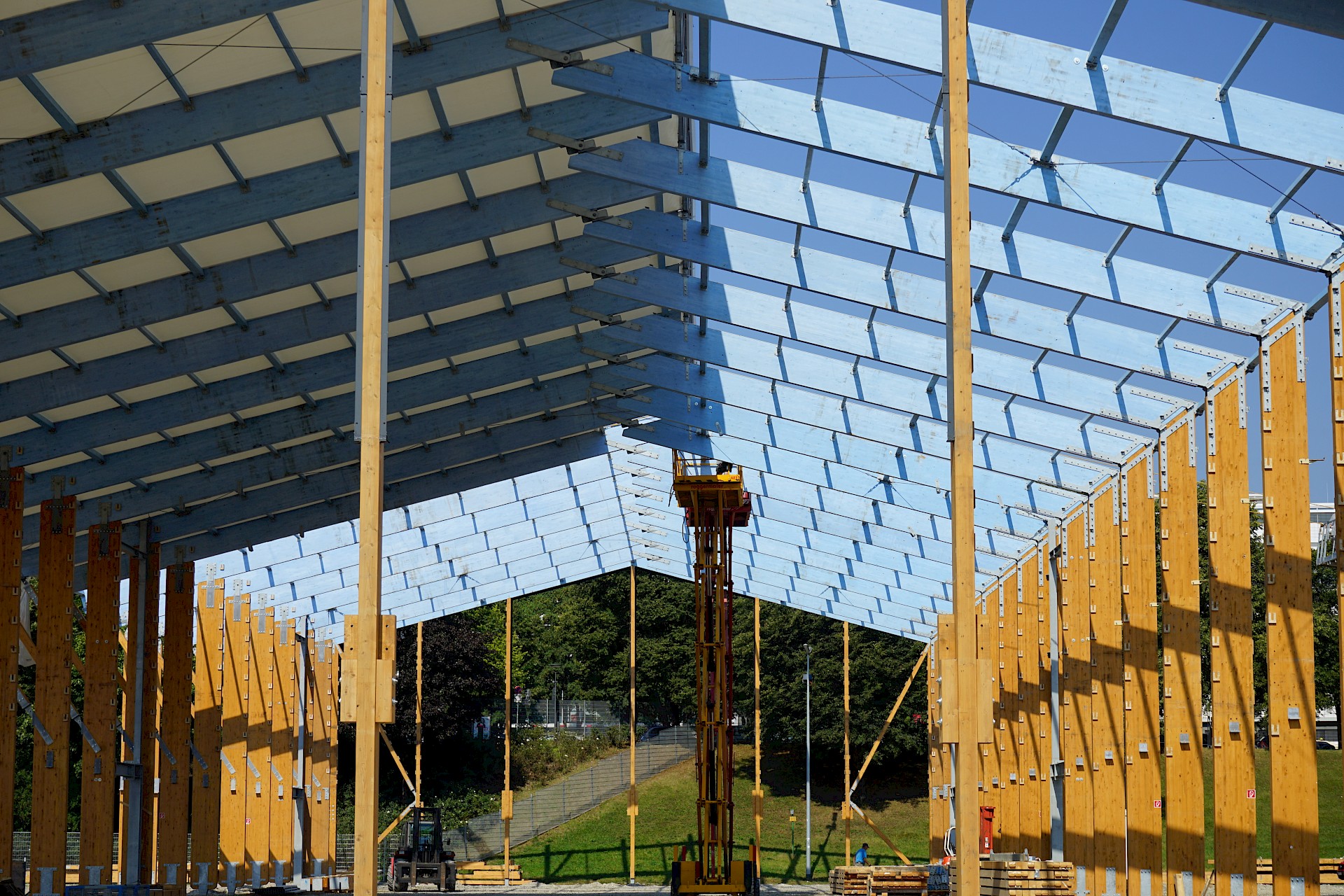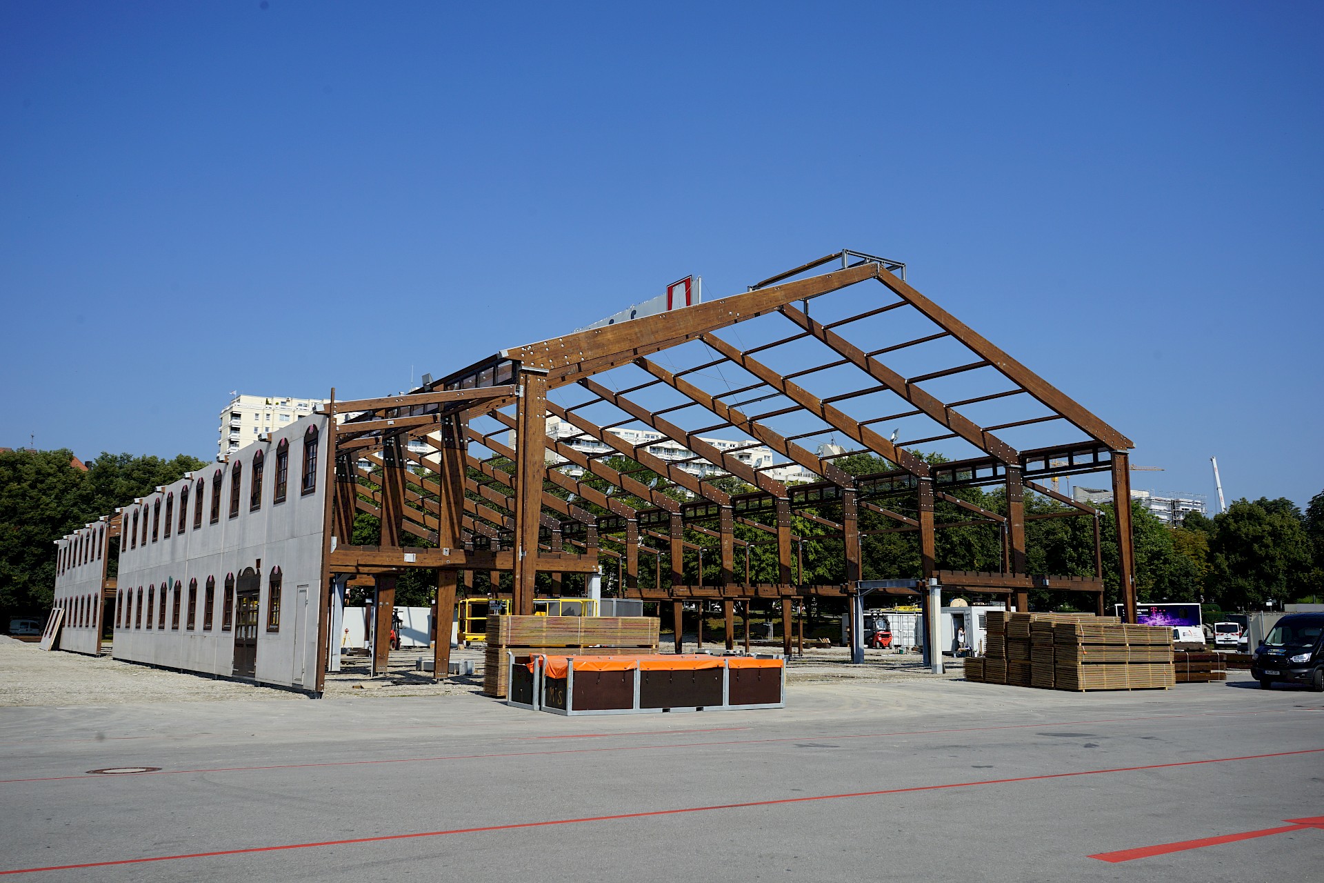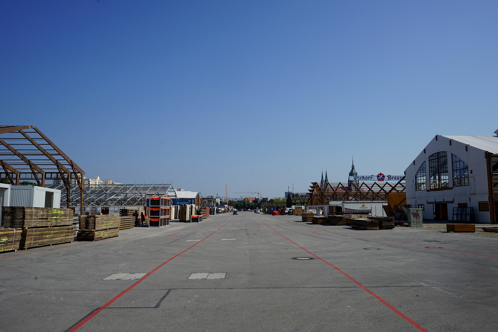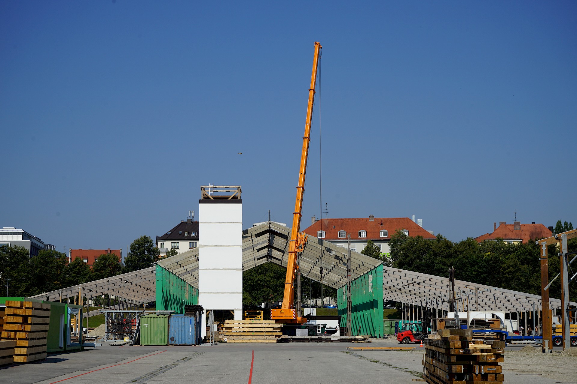 In der offiziell zweiten Aufbauwoche des Oktoberfestes 2018 zeigt sich das gewohnt Bild. Während einige Zelte erst ihr Mittelschiff präsentieren, sind andere bereits teilweise mit Außenwänden oder gar Zeltplanen versehen.
