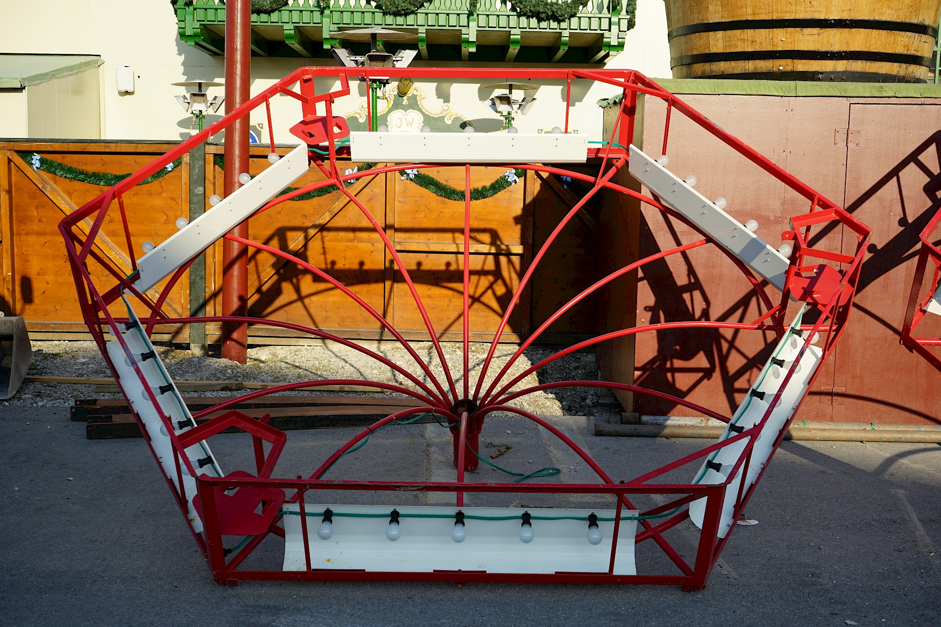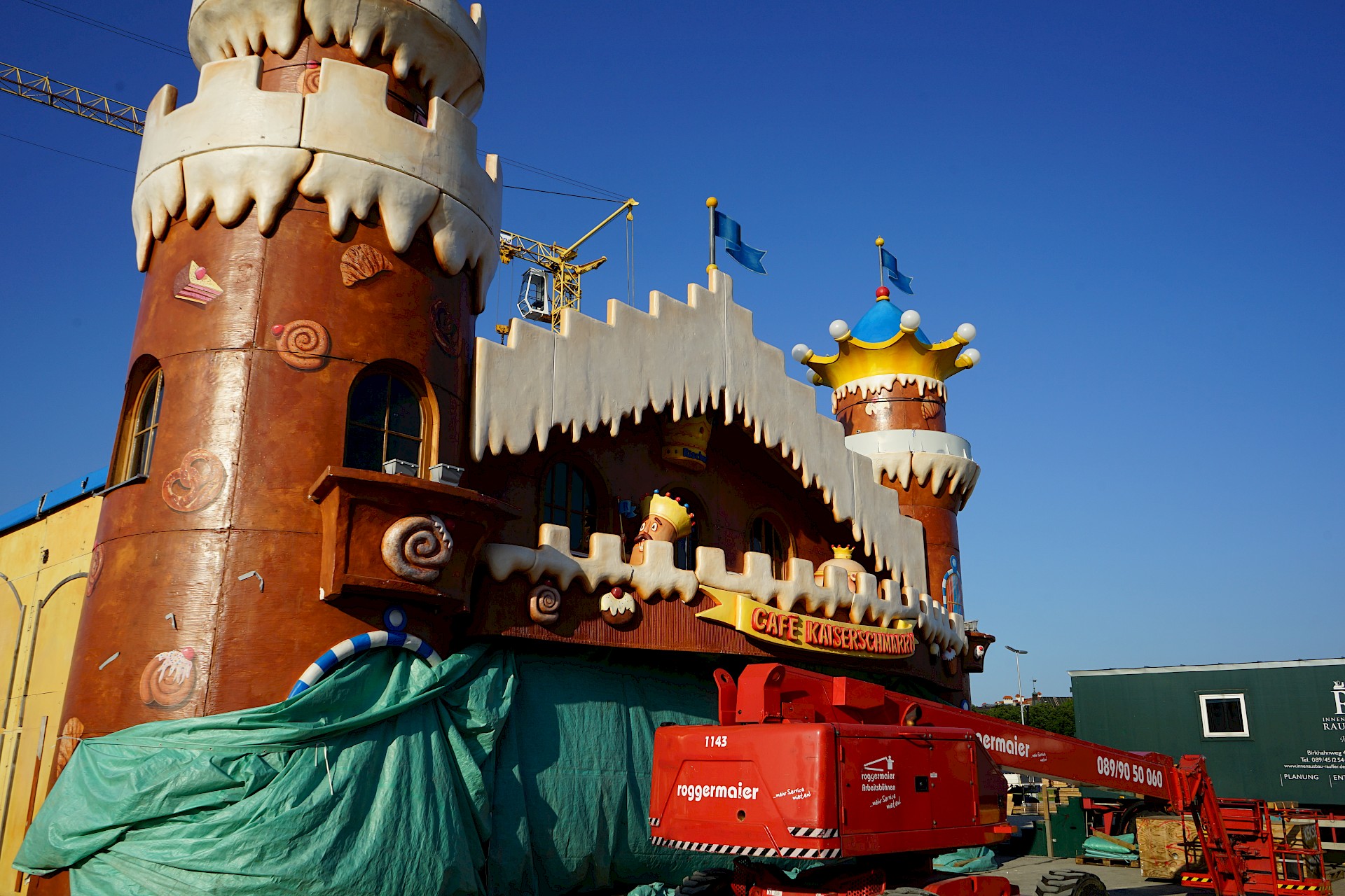 Erfreulich ist auch die Ankunft der ersten Fahrgeschäfte. Der Olympia-Looping und der Geisterpalast werden bereits aufgebaut, während die ersten Teile des Riesenrads zwar bereits auf der Theresienwiese, noch nicht aber an ihrem Bestimmungsort stehen. Auch einige städtische Buden wurden bereits vom Mariahilfplatz herübergefahren.