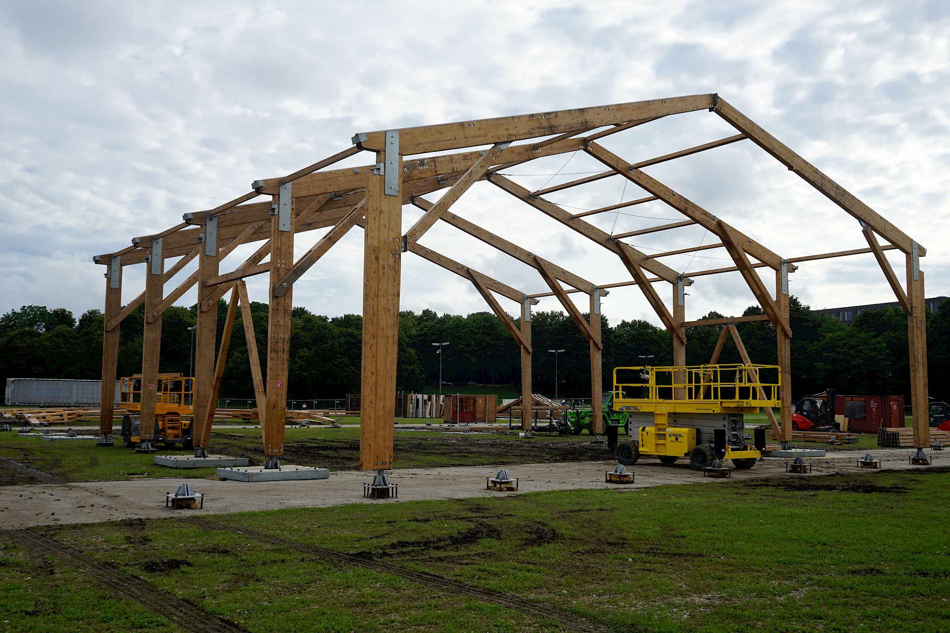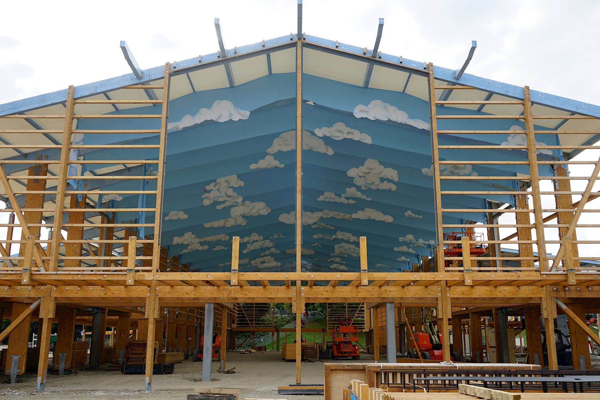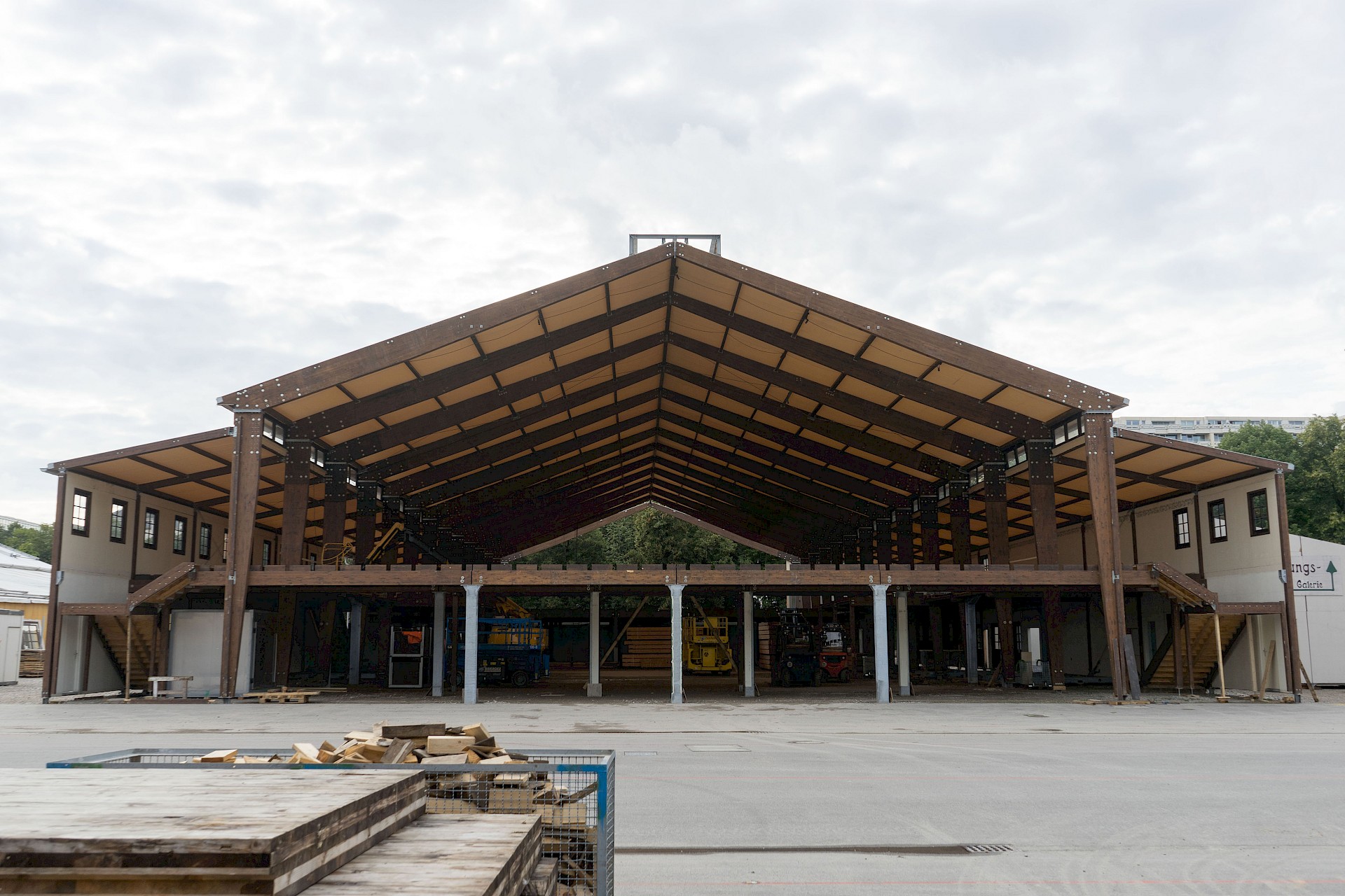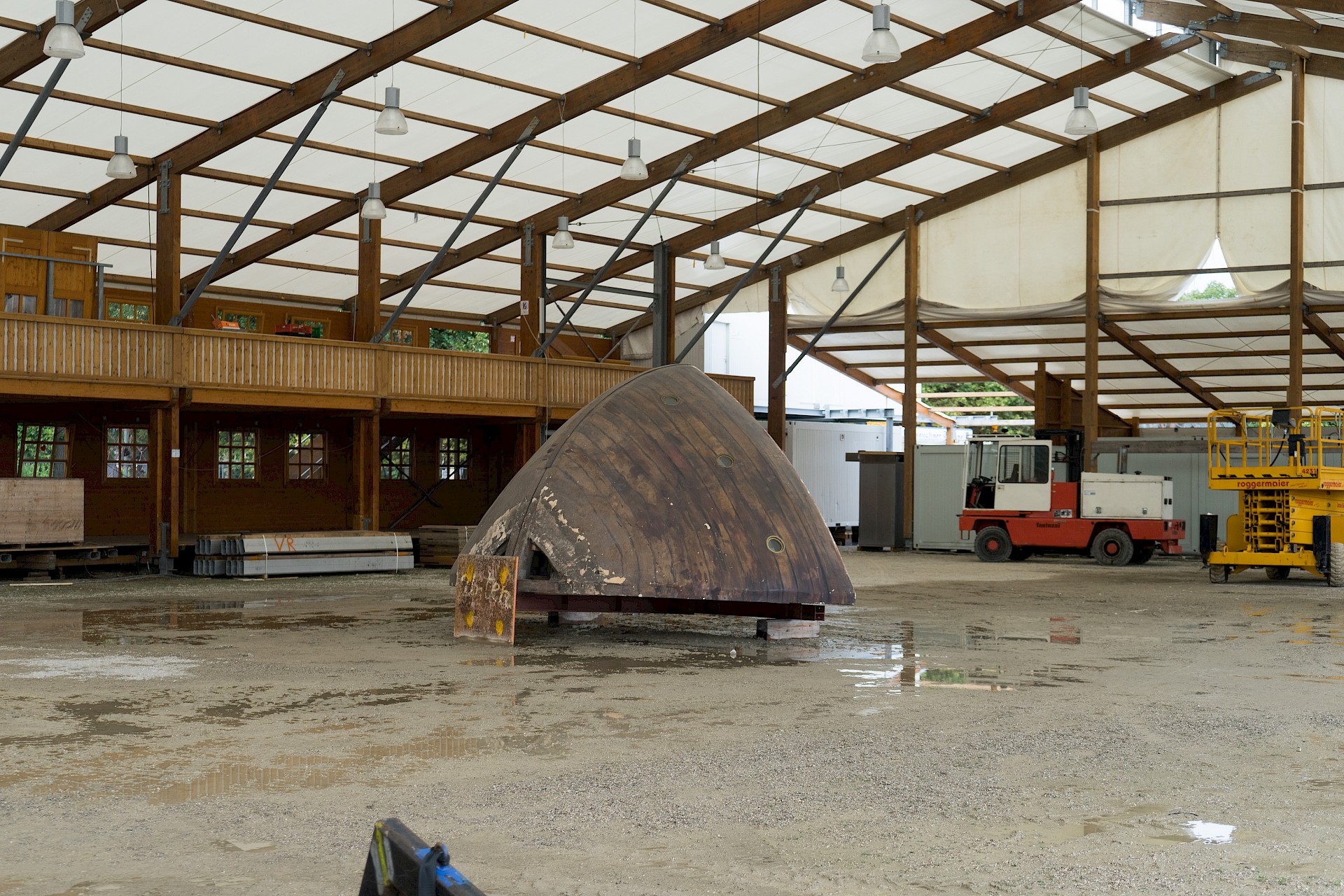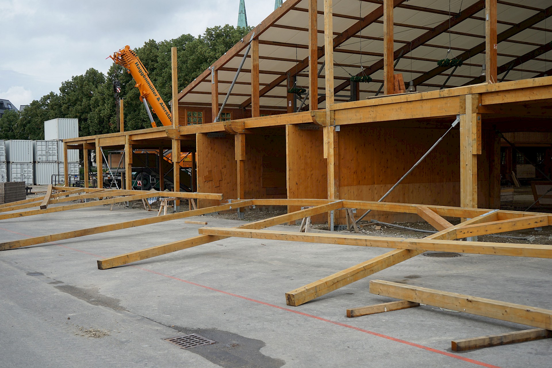 In der vierten Woche des Wiesnaufbaus 2019 sind die ersten Zelte nahezu vollständig eingehaust. Das Hackerzelt, das sonst allerdings noch recht nackert dasteht, verfügt bereits über erste Himmelsteile und der Turm des Augustinerzelts wird auch schön langsam zusammengesetzt. Auch auf der Oidn Wiesn tut sich inzwischen etwas. Das Traditionszelt ist jedoch das einzige Zelt, von dem bislang etwas aufgerichtet worden ist. Aufmerksame Beobachter bemerken dort, dass das Zelt nur teilweise über Fundamente verfügt.