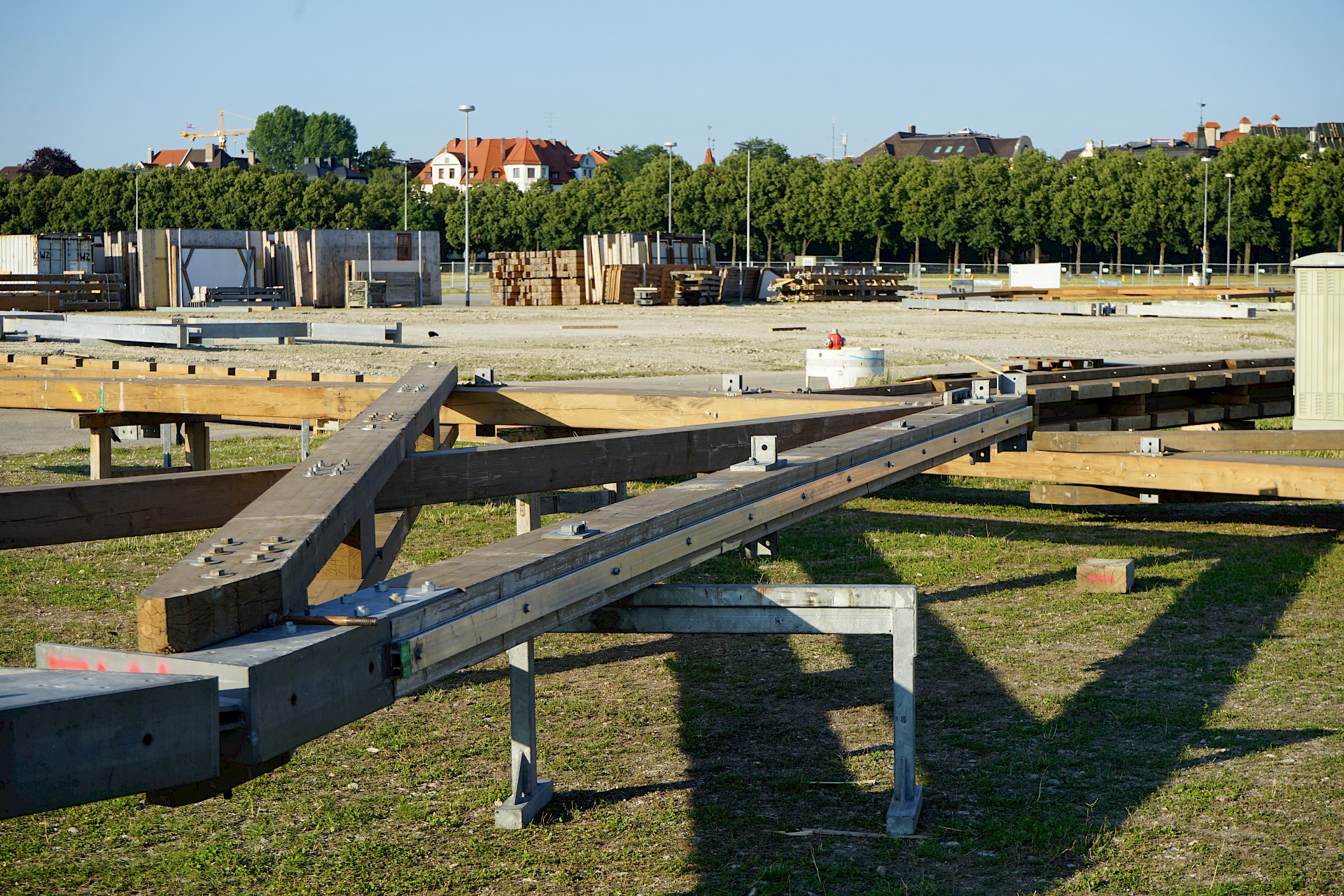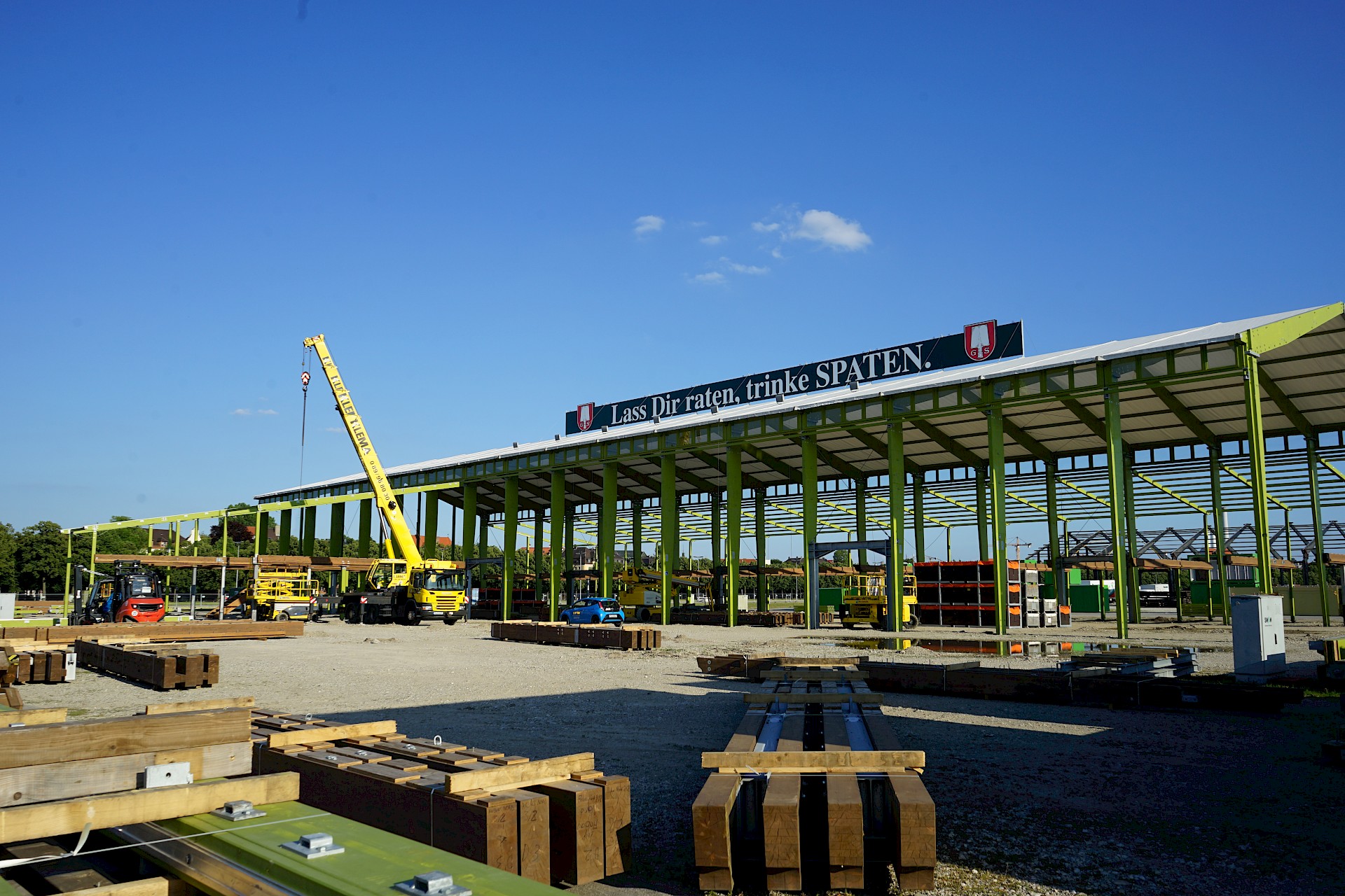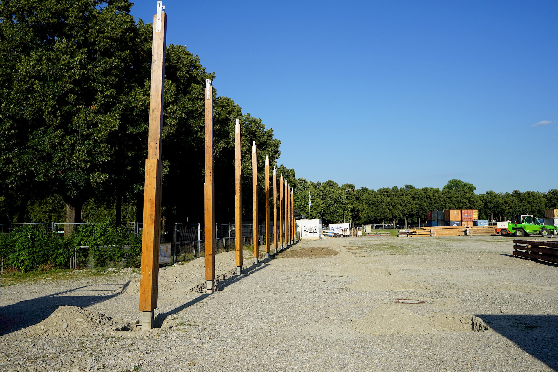 So sind auch dieses Jahr in der zweiten Aufbauwoche erhebliche Unterschiede zwischen den einzelnen Baustellen zu sehen. Während man bei der Ochsenbraterei oder der Schottenhamel-Festhalle bereits mit den Gerüsten der Seitenschiffe und einzelner Wandteile begonnen hat, liegen beim Hackerzelt noch nicht einmal die Fundamente frei. Auf der Oidn Wiesn wird sowieso erst später mit dem Aufbau begonnen.