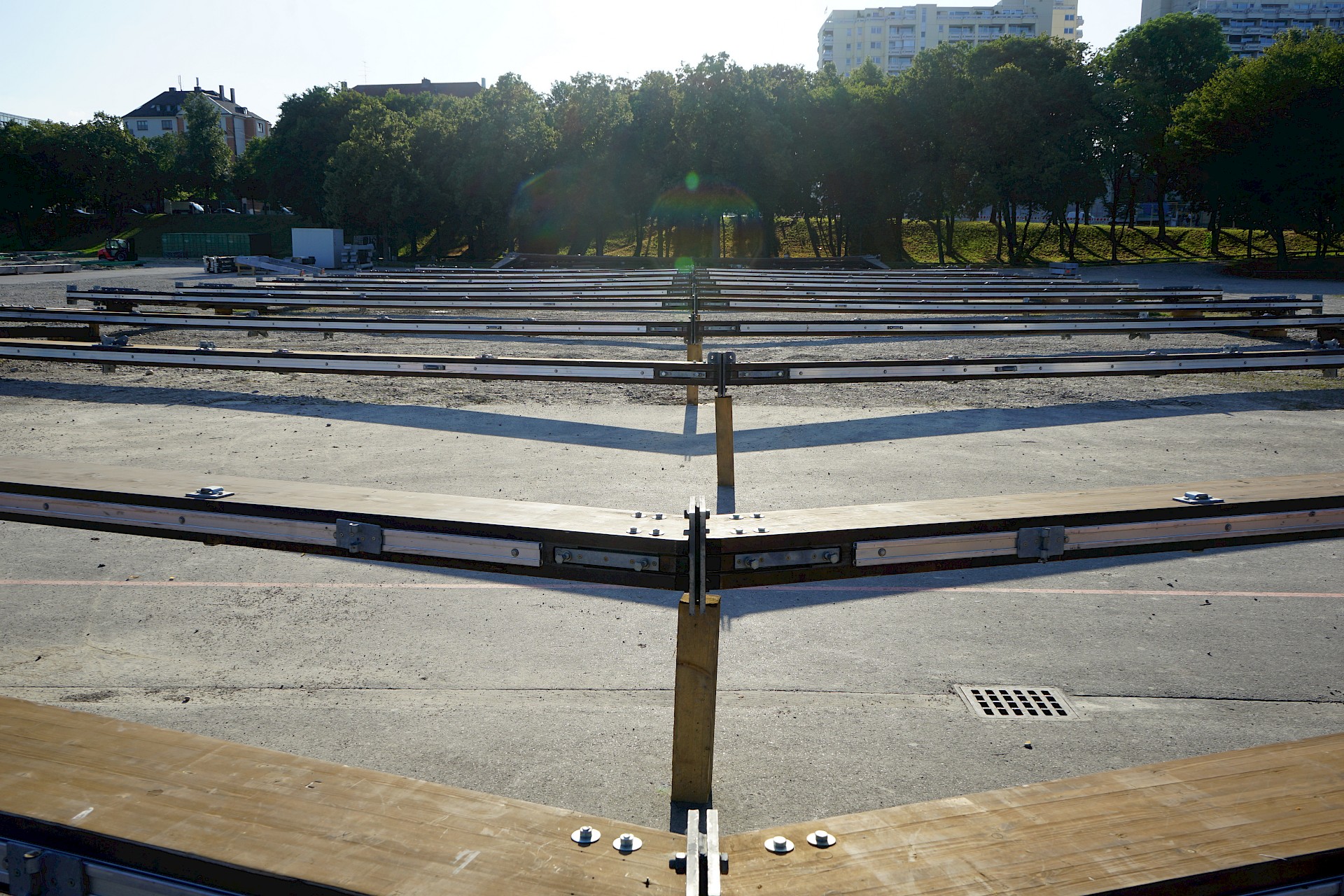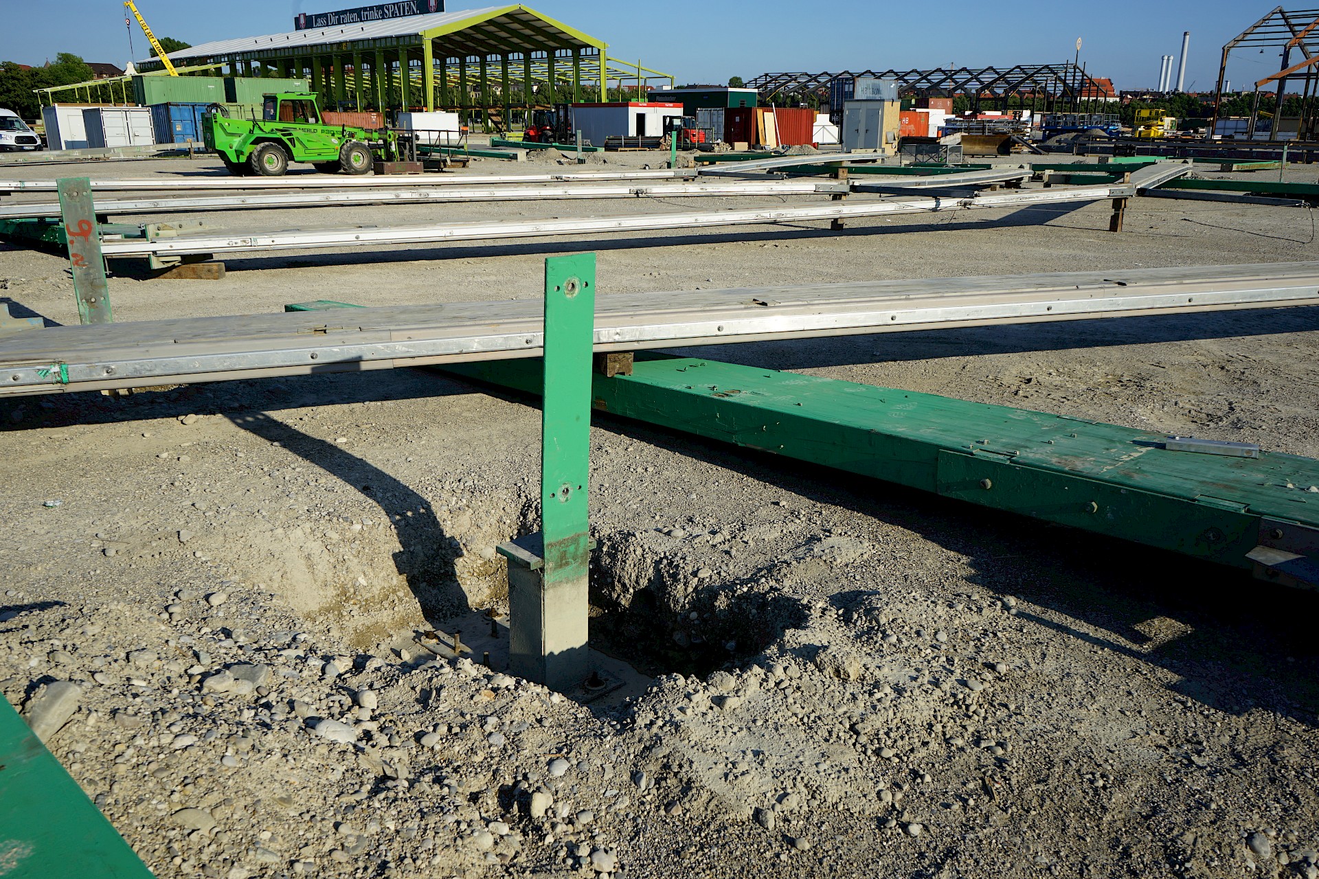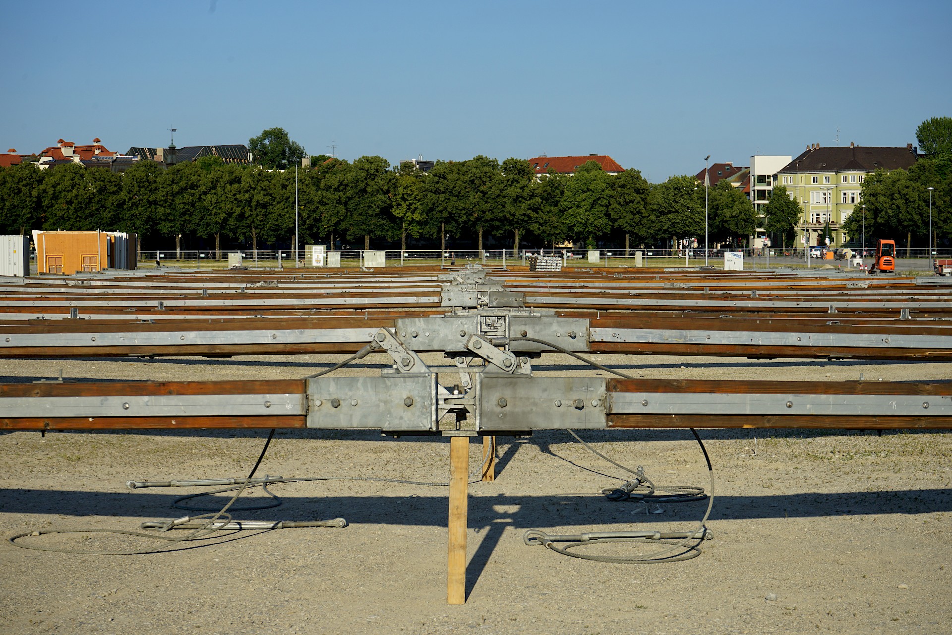 So sind auch dieses Jahr in der zweiten Aufbauwoche erhebliche Unterschiede zwischen den einzelnen Baustellen zu sehen. Während man bei der Ochsenbraterei oder der Schottenhamel-Festhalle bereits mit den Gerüsten der Seitenschiffe und einzelner Wandteile begonnen hat, liegen beim Hackerzelt noch nicht einmal die Fundamente frei. Auf der Oidn Wiesn wird sowieso erst später mit dem Aufbau begonnen.