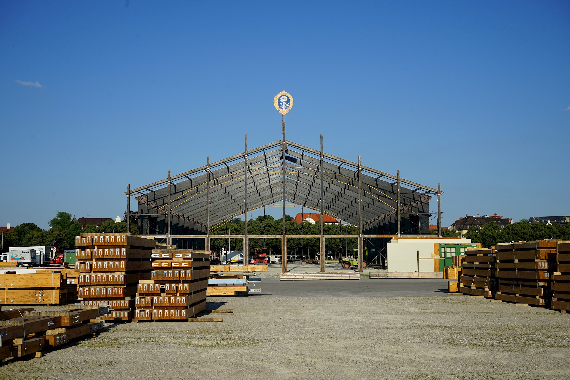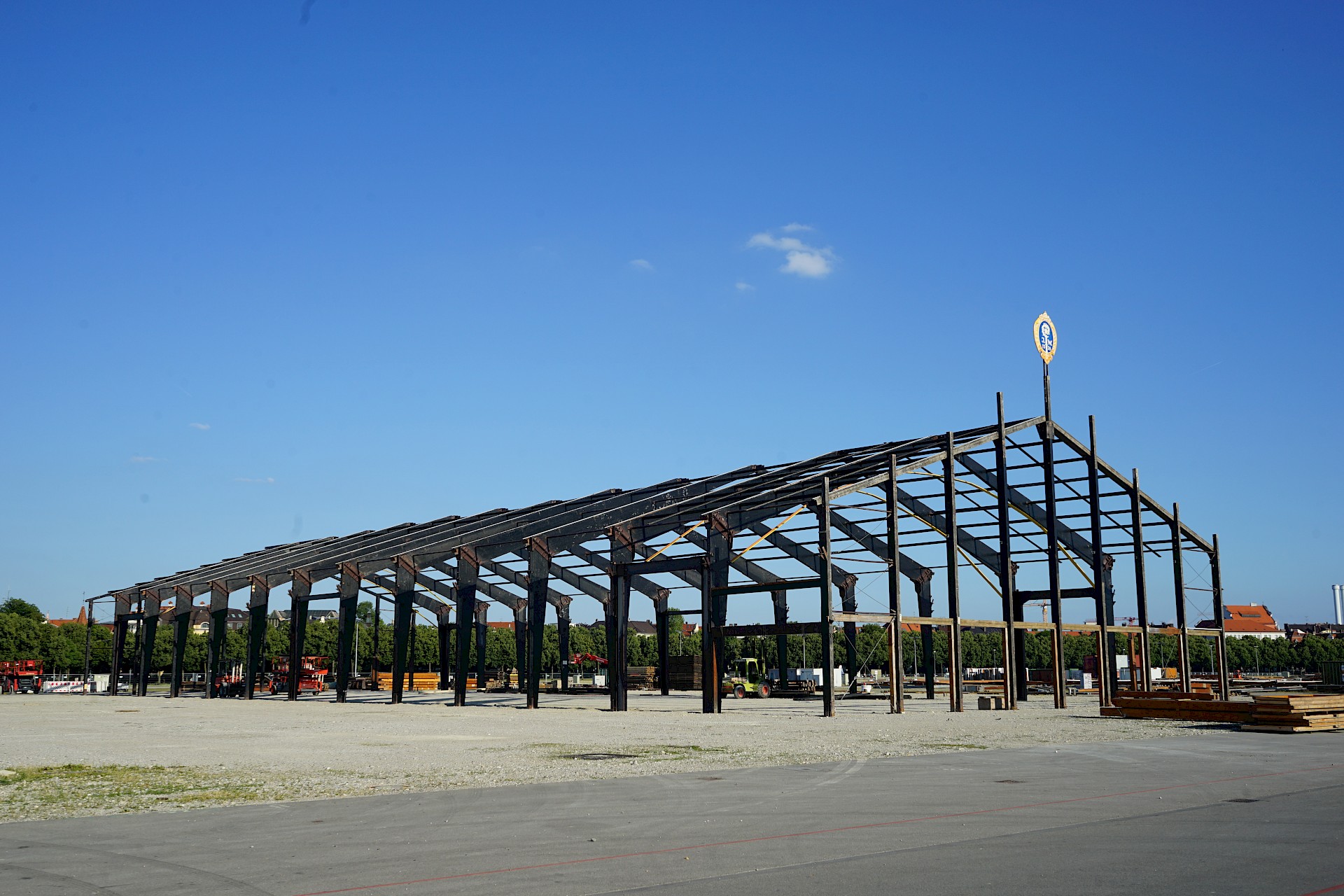 In unserer Galerie aus der zweiten Aufbauwoche des Oktoberfestes 2019 sehen Sie die ersten Gerüste der Mittelschiffe der großen Wiesnzelte, die bereits aufgebaut wurden.