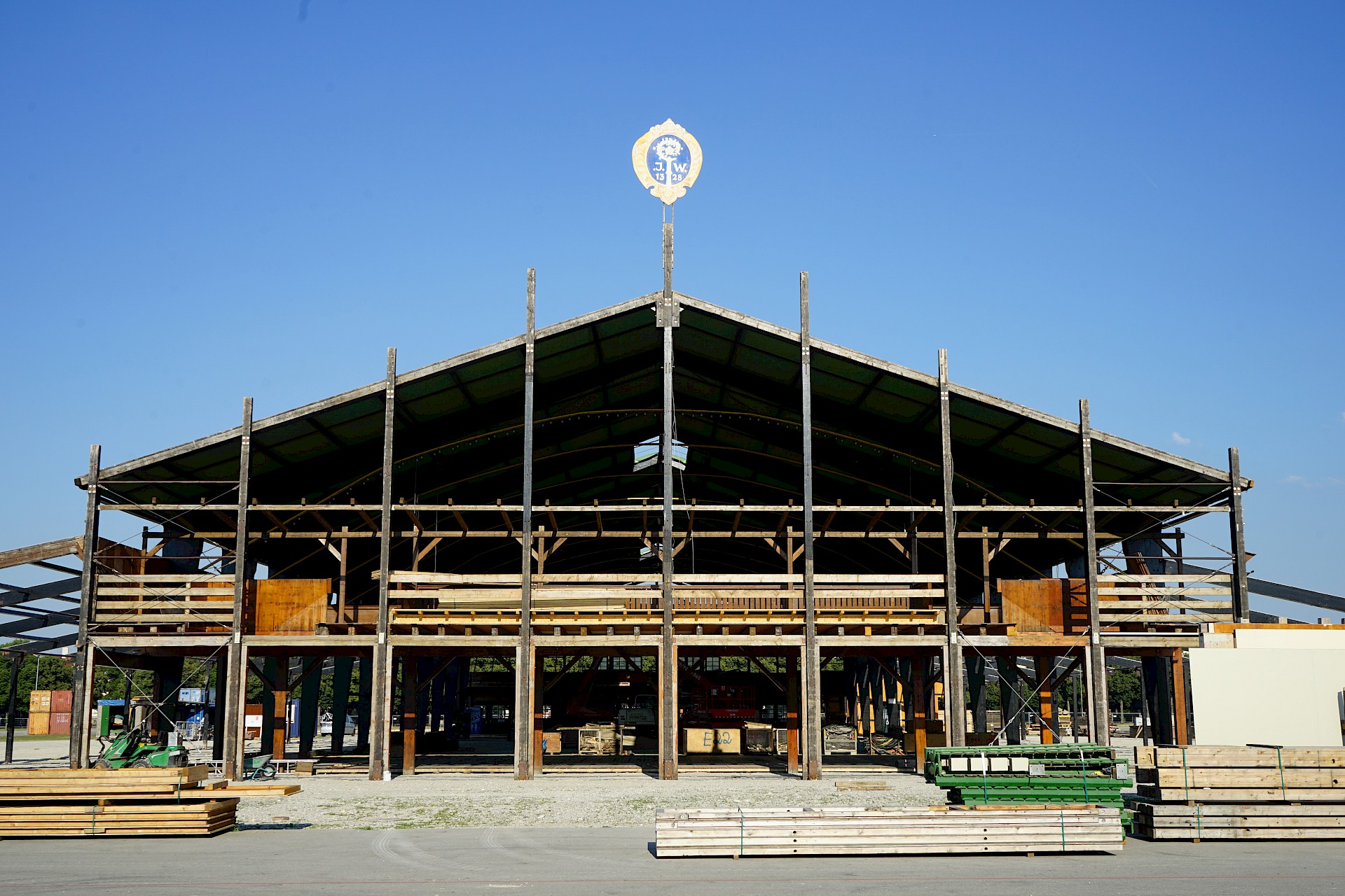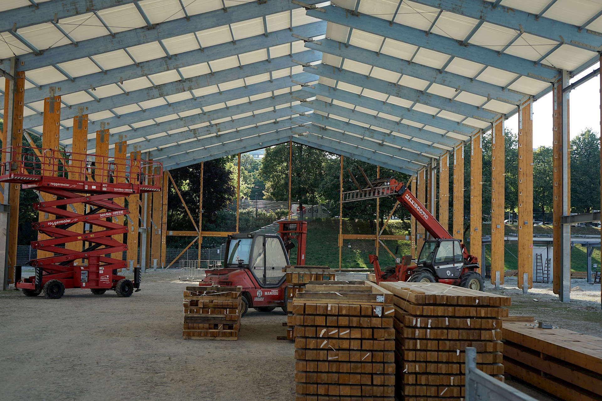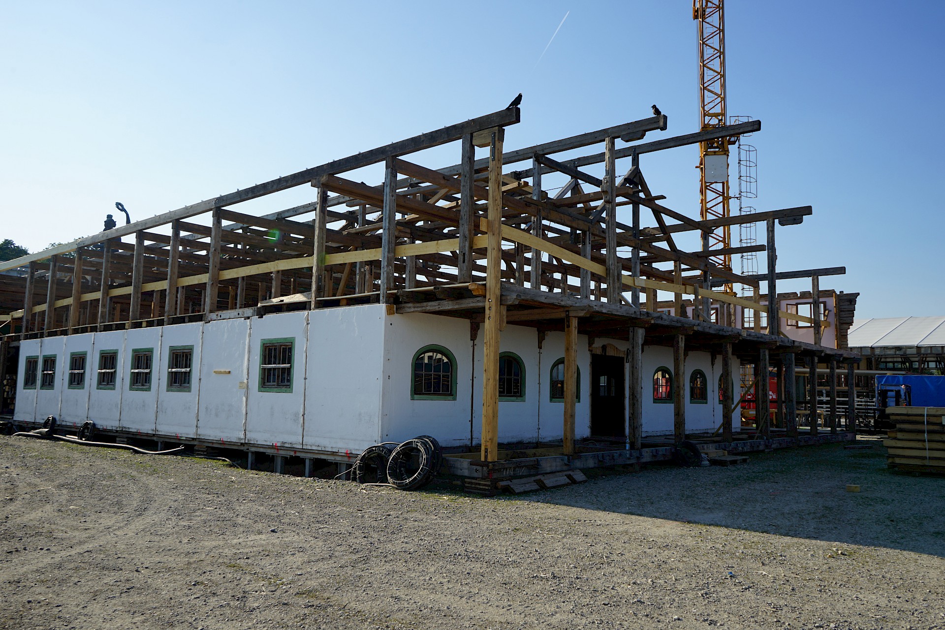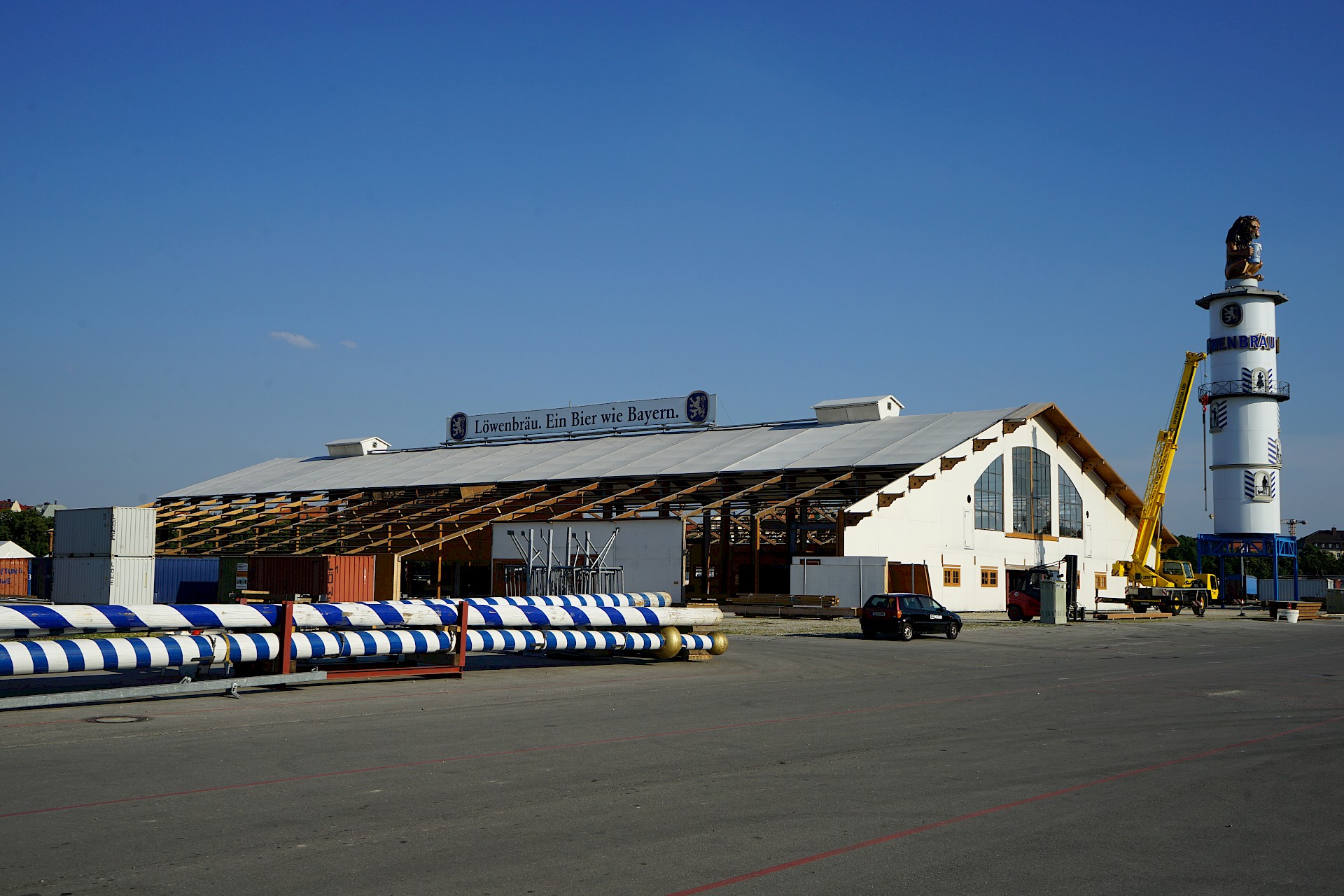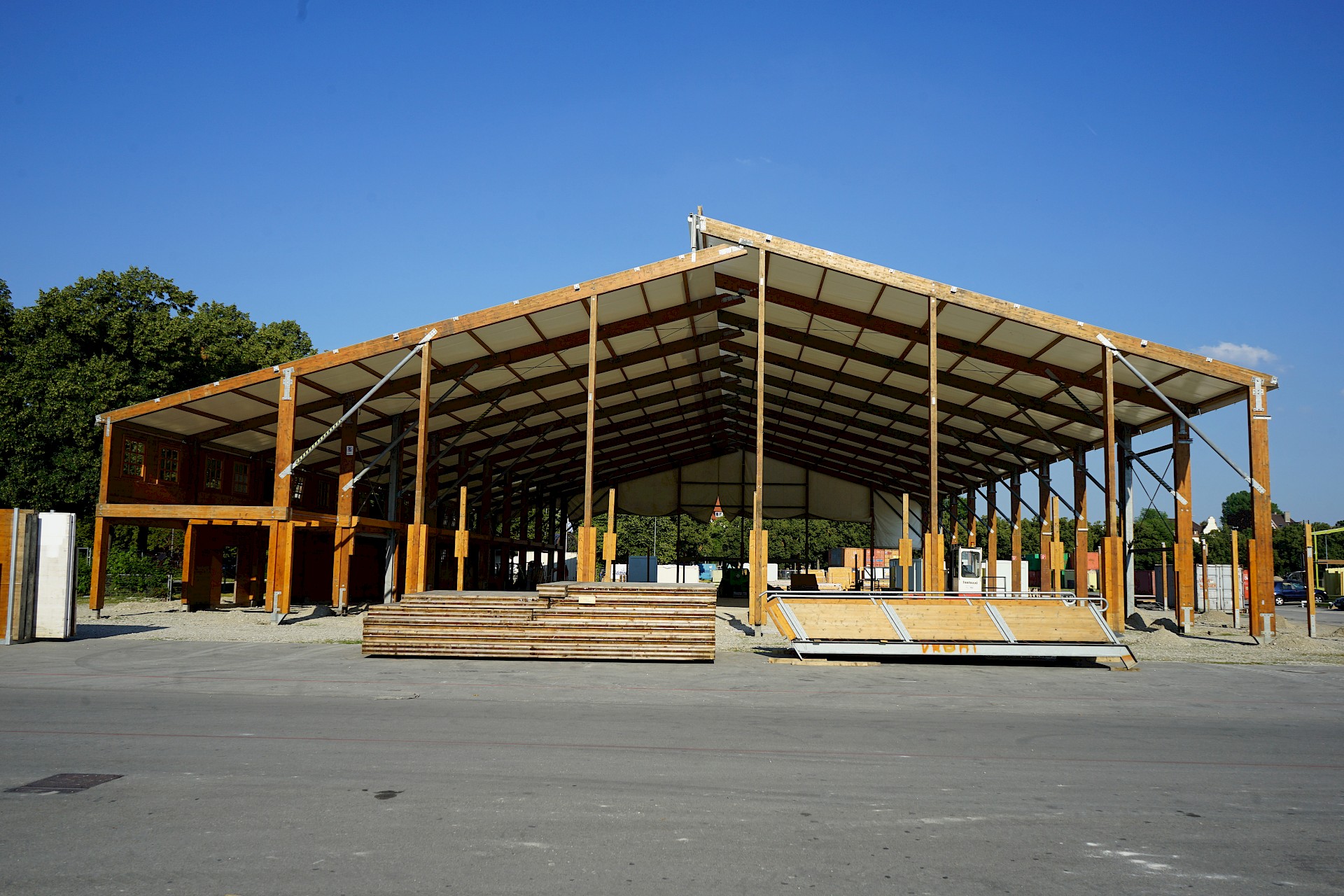 Der Oktoberfestaufbau 2019 ist in Woche weit vorangeschritten. Die Schottenhamel-Festhalle lässt ihr Aussehen immerhin bereits erahnen und auch die Gerüste Nachzügler sind jetzt Großteils aufgestellt, bei der Fischer-Vroni, dem Hackerzelt und für viele Galerien sind aber immer noch einige Fundamente freizulegen. Auch sind bereits die ersten Teile für das erste kleine Zelt, die Kalbsbraterei, aufgetaucht. Auf der Oidn Wiesn wird noch nicht aufgebaut.