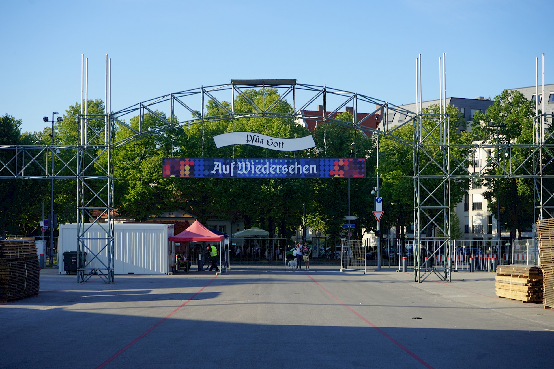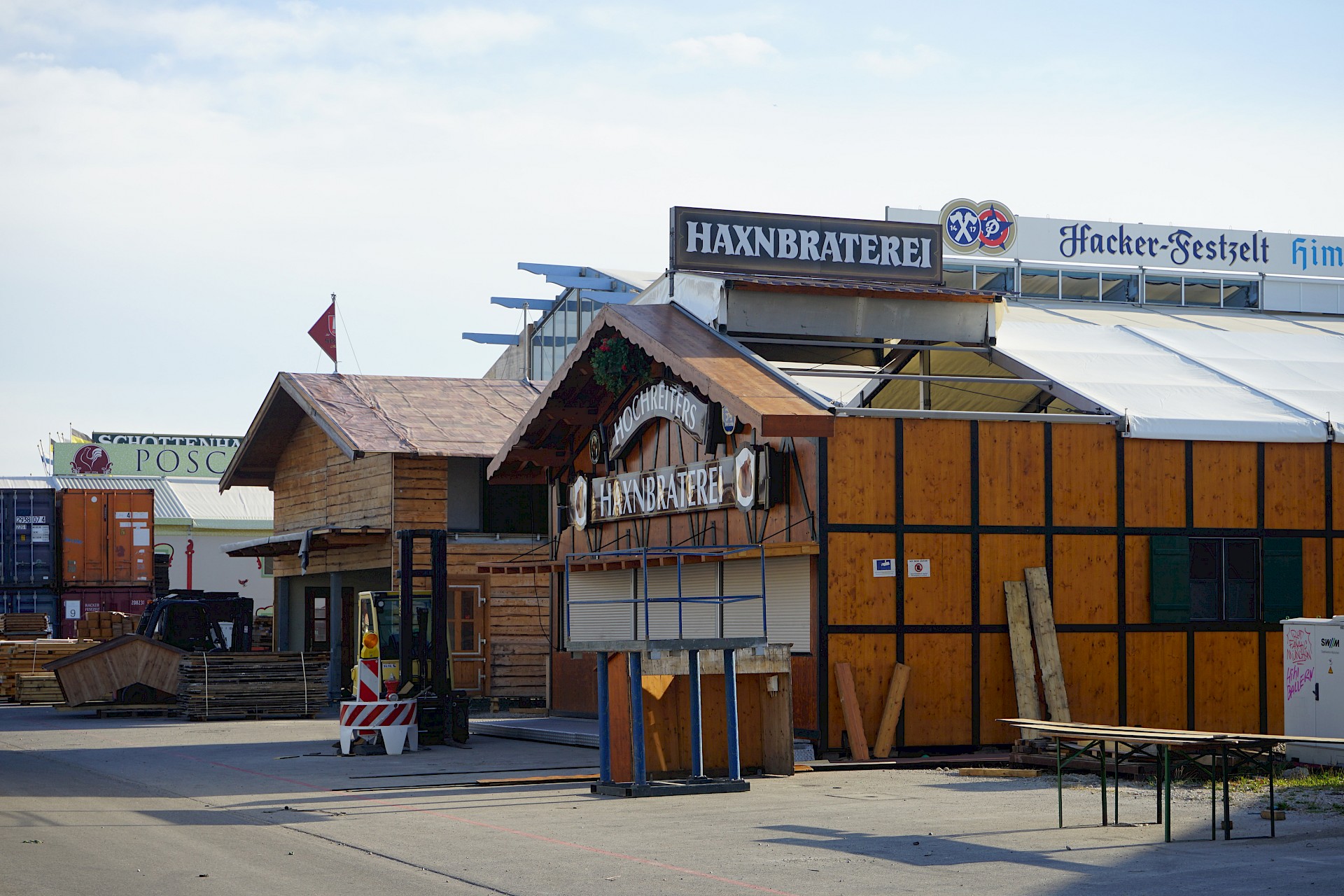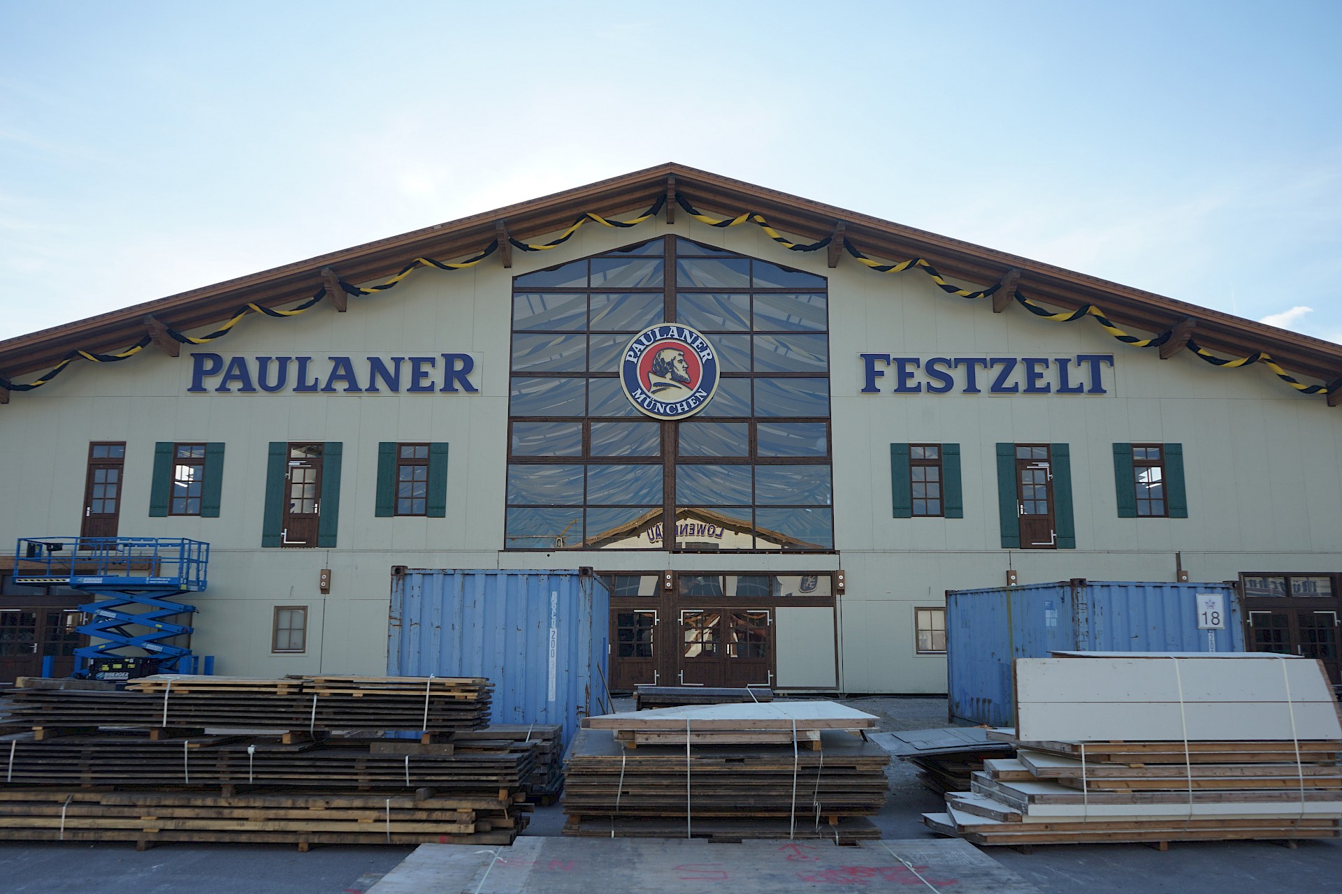 Der Oktoberfestaufbau 2022 geht in seine achte Woche. An der Fassade der Münchner Stubn, die im ehemaligen Stiftlzelt beherbert wird, geht es langsam voran. Dafür hängen in der Bräurosl inzwischen die Tuchbahnen. Die augenfälligste Neuheit der Woche ist aber mit Sicherheit das neue Schild am Haupteingang.