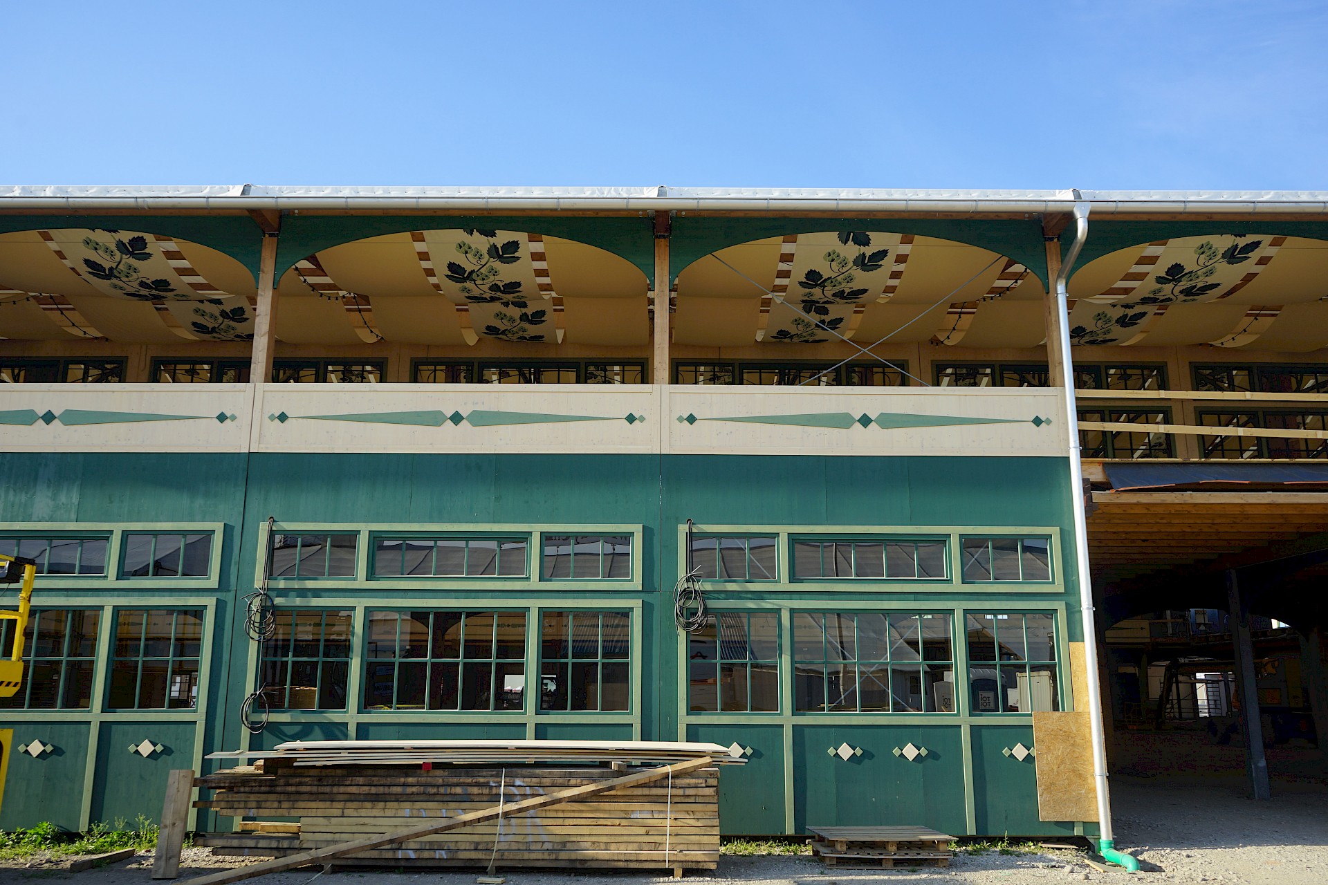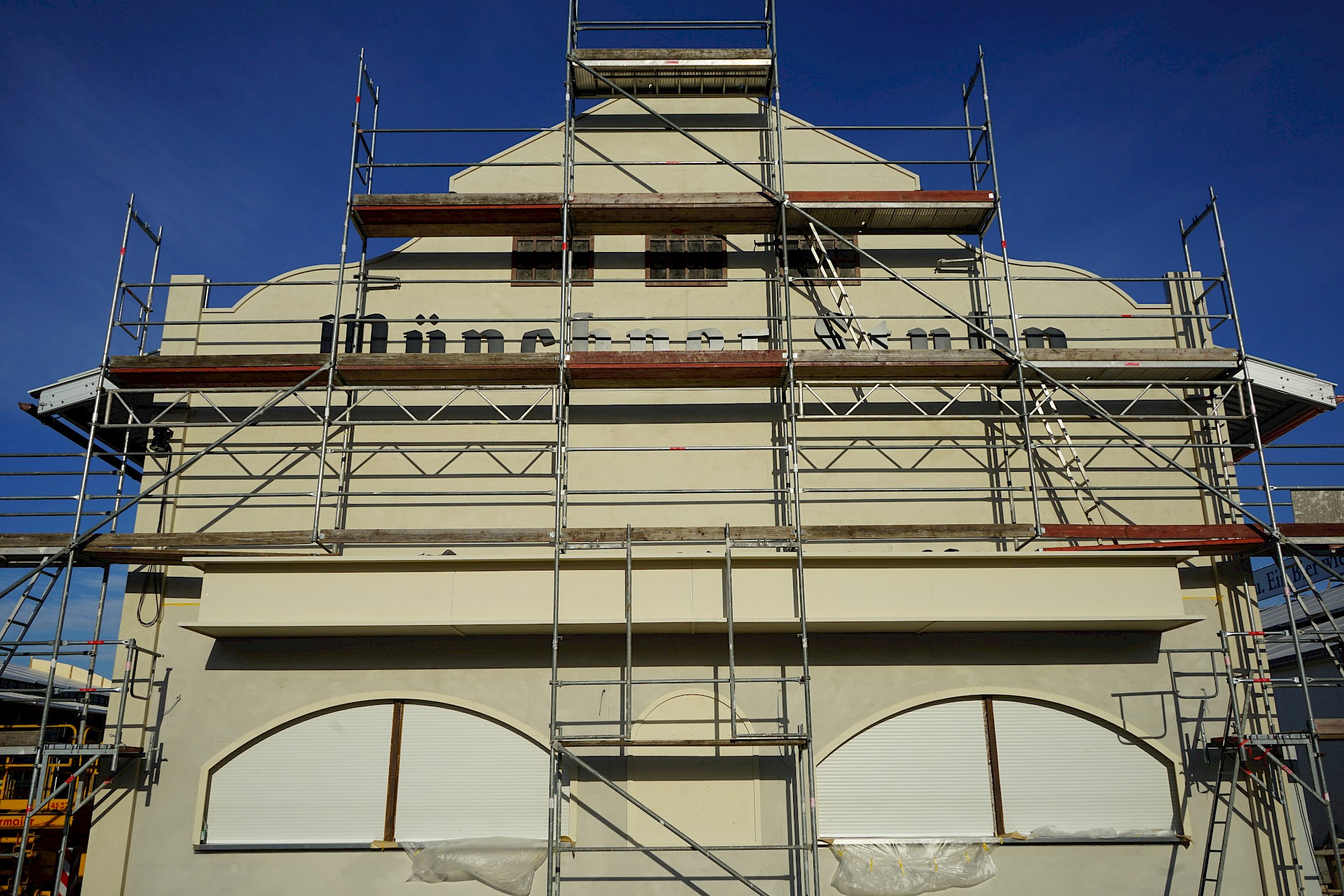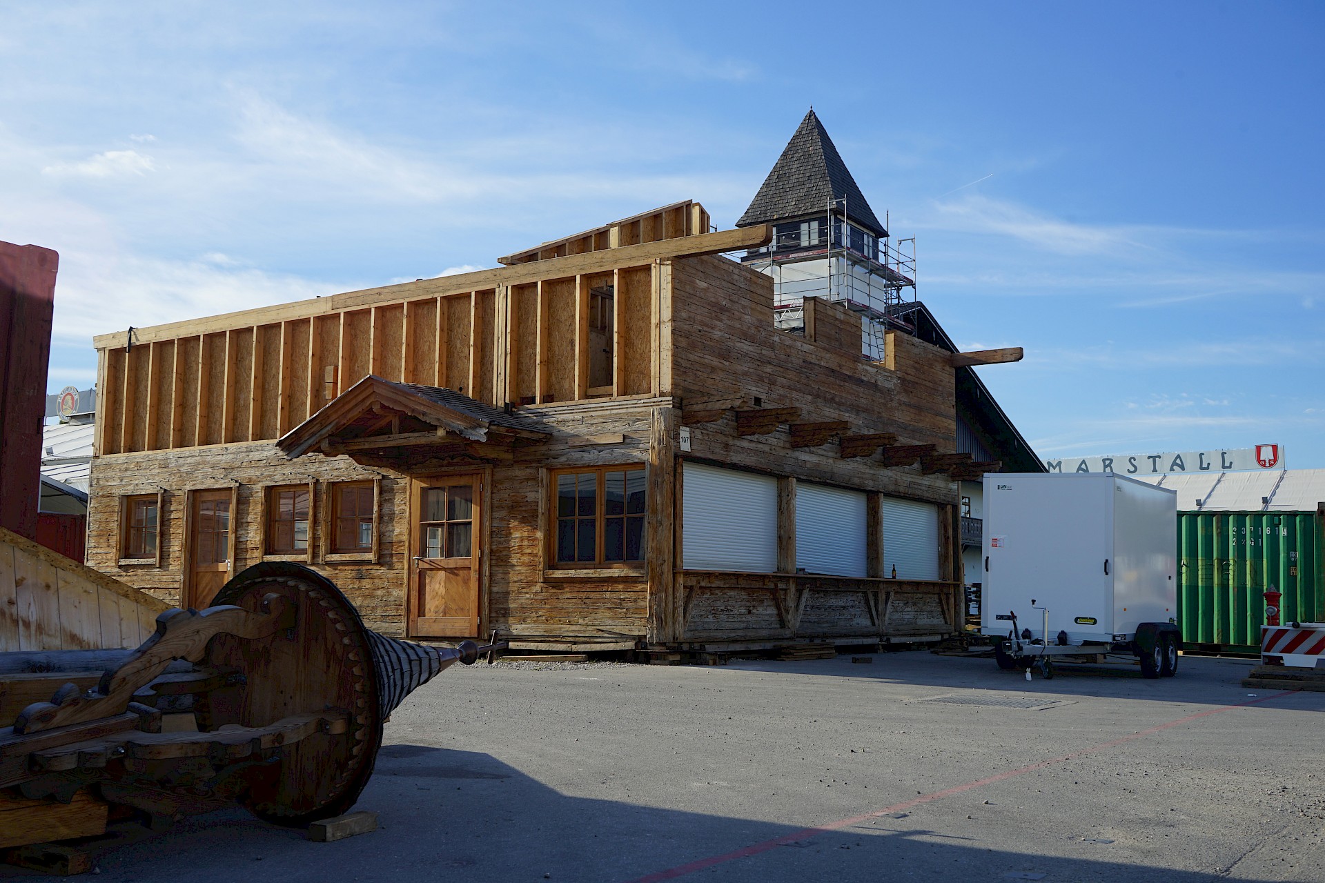 Der Oktoberfestaufbau 2022 geht in seine achte Woche. An der Fassade der Münchner Stubn, die im ehemaligen Stiftlzelt beherbert wird, geht es langsam voran. Dafür hängen in der Bräurosl inzwischen die Tuchbahnen. Die augenfälligste Neuheit der Woche ist aber mit Sicherheit das neue Schild am Haupteingang.