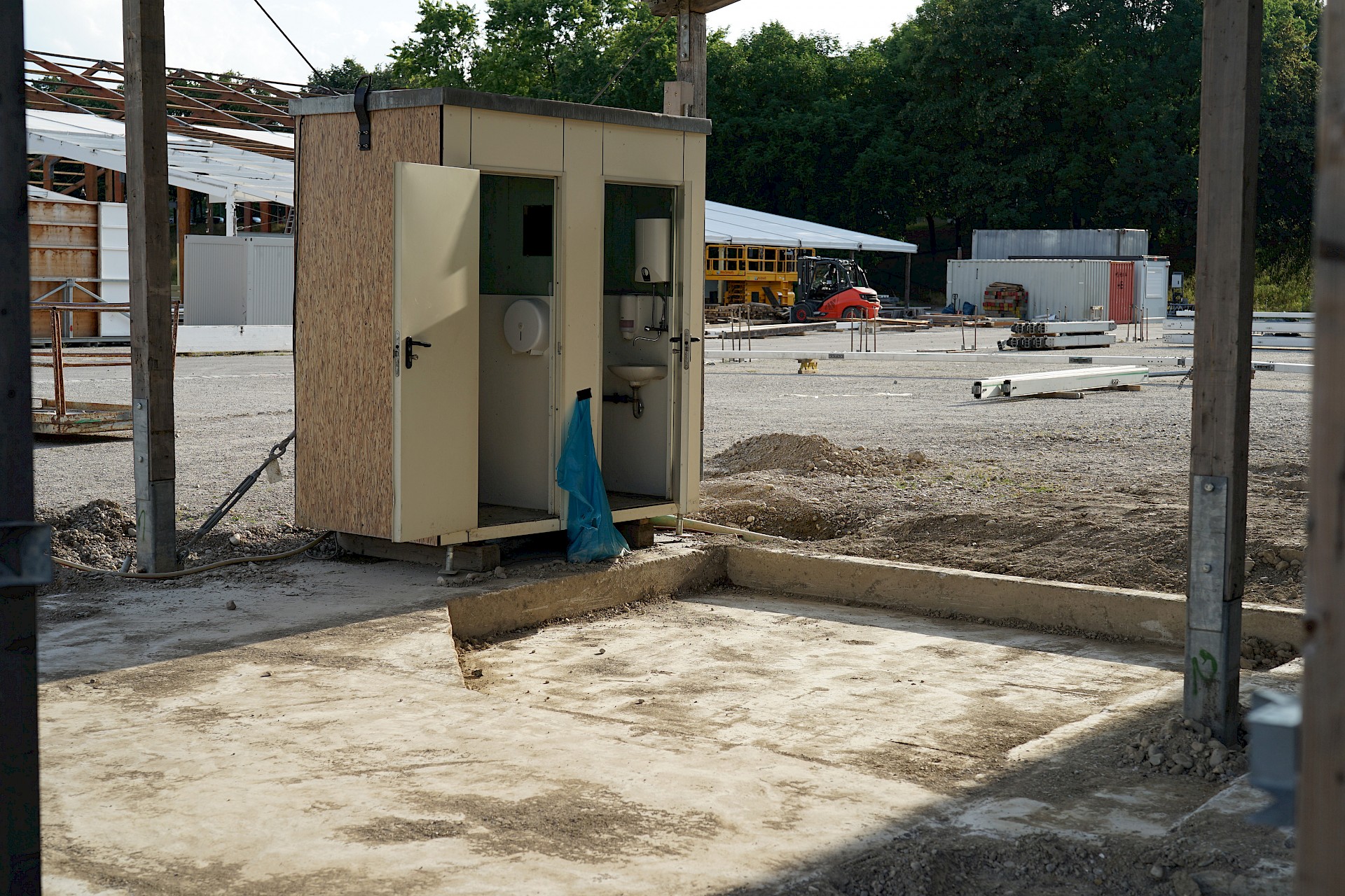 In der zweiten Aufbauwoche wird sogar schon betoniert.