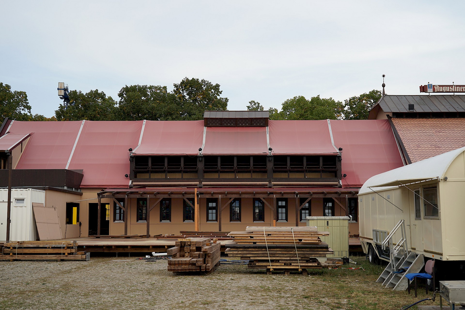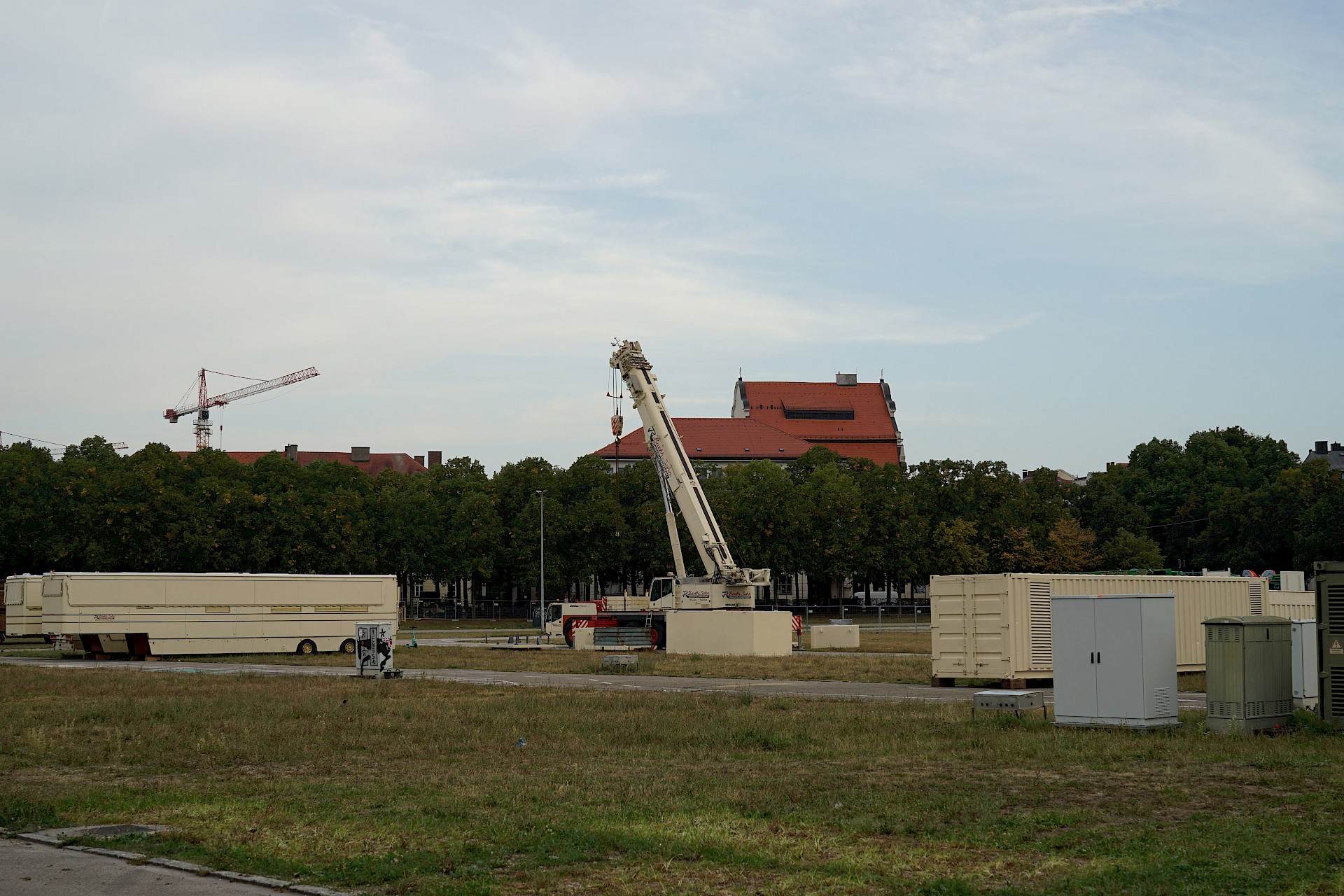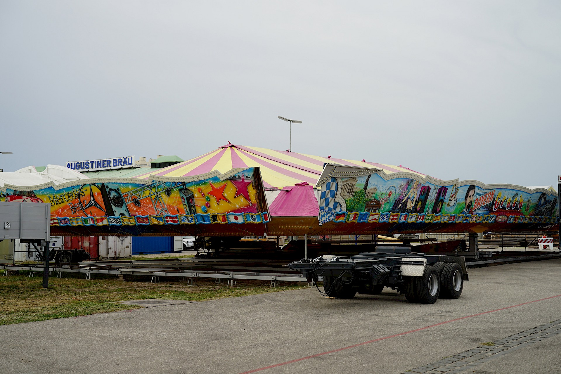 Die siebte Woche des Oktoberfestaufbaus 2023 bringt die Theresienwiese deutlich näher an ihre Oktoberfest-Gestalt gebracht. Seit 23. August dürfen nämlich die großen Fahrgeschäfte aufgebaut werden, wovon manch eines bereits Gebrauch macht.