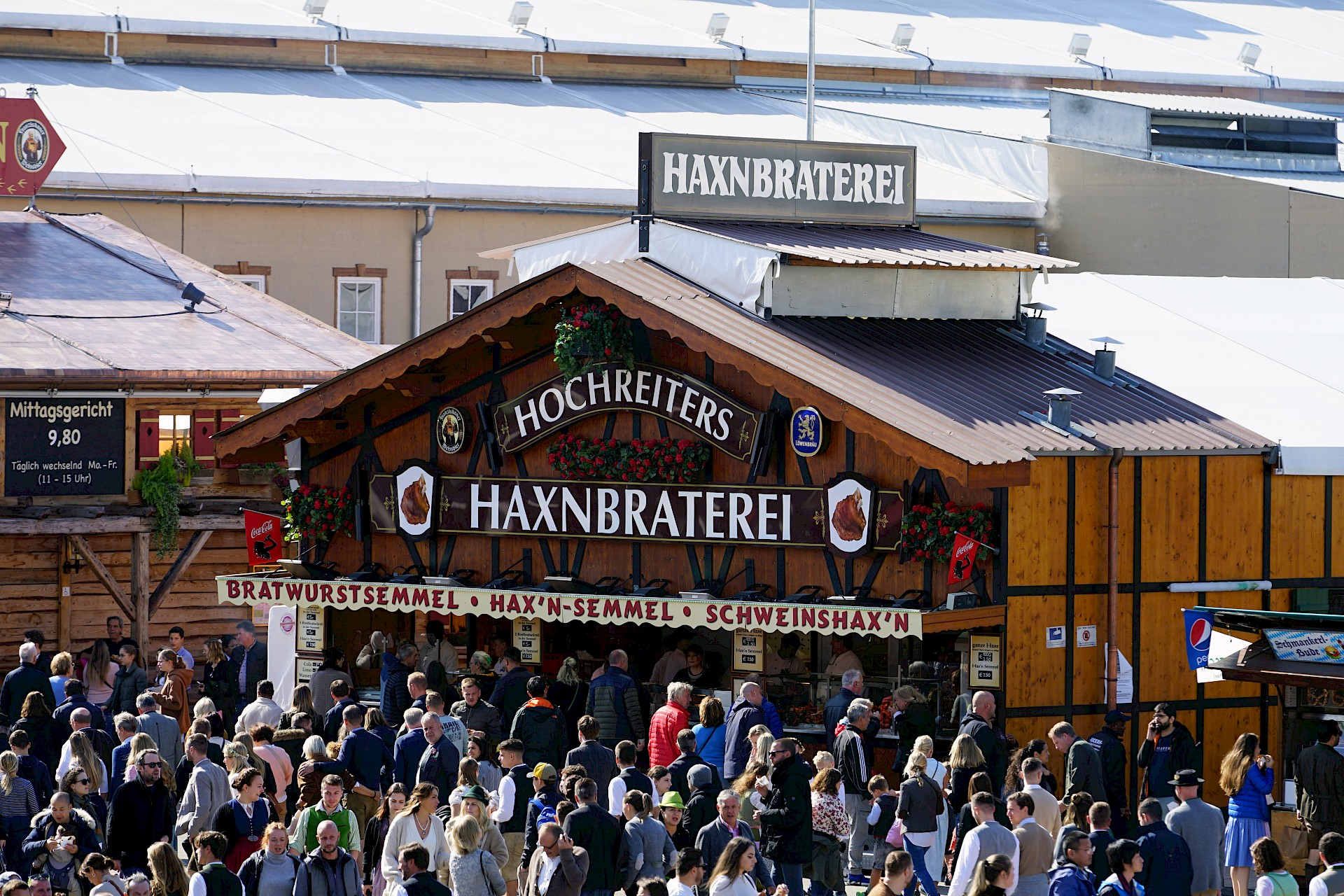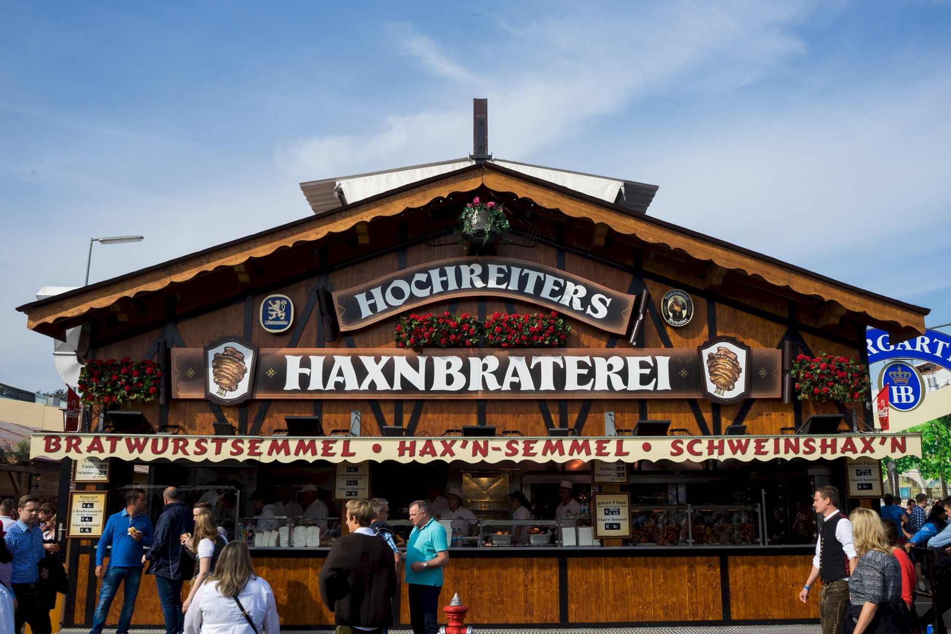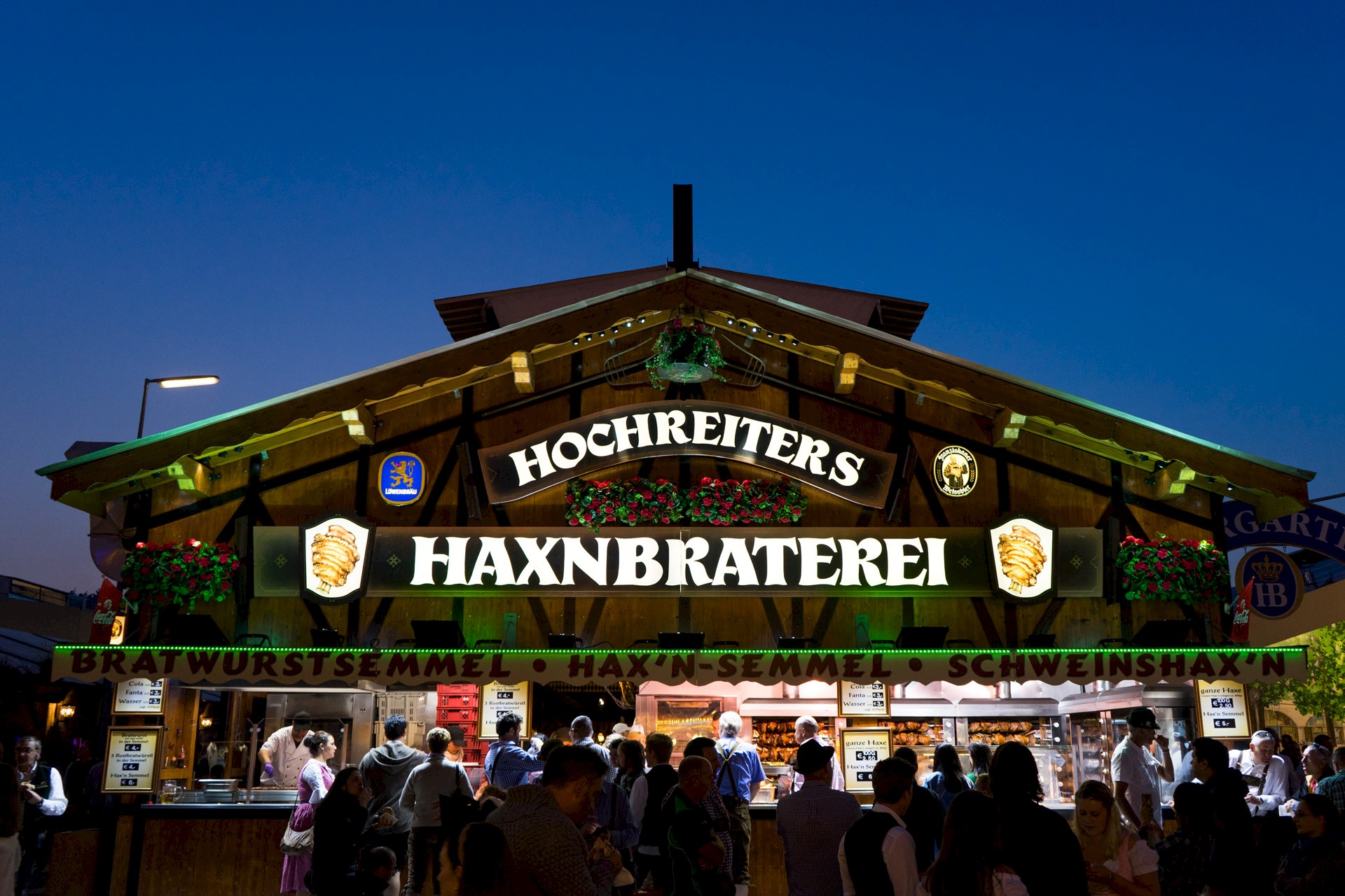 La rôtisserie de jambonneau est l’épicentre de la trinité de tentes d’Oktoberfest des frères Hochreiter qui ont aujourd’hui la Haxnbraterei, Zur Bratwurst et la Kalbsbraterei. À cause du focus de la tente sur des jarrets de veau et de porc, son hôte Dieter Hochreiter l’a toujours vu plutôt comme un restaurant qu’une tente de bière et s’est conséquemment abstenu de la musique.