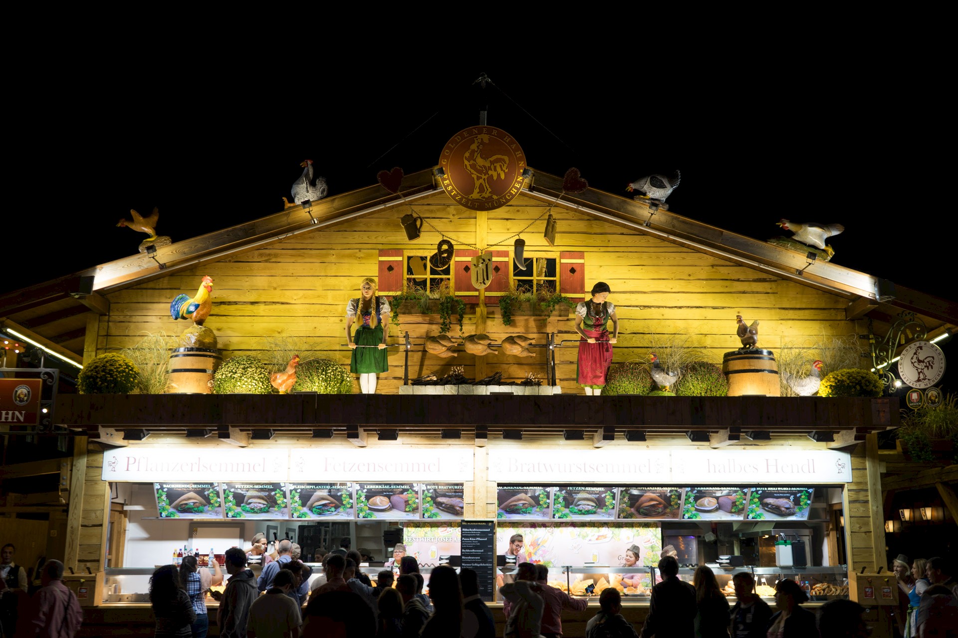 Die Hendlbraterei richtet sich an Kundschaft, die die Wiesn mit Champagnerfrühstück und Hendl-Menüs verbindet.