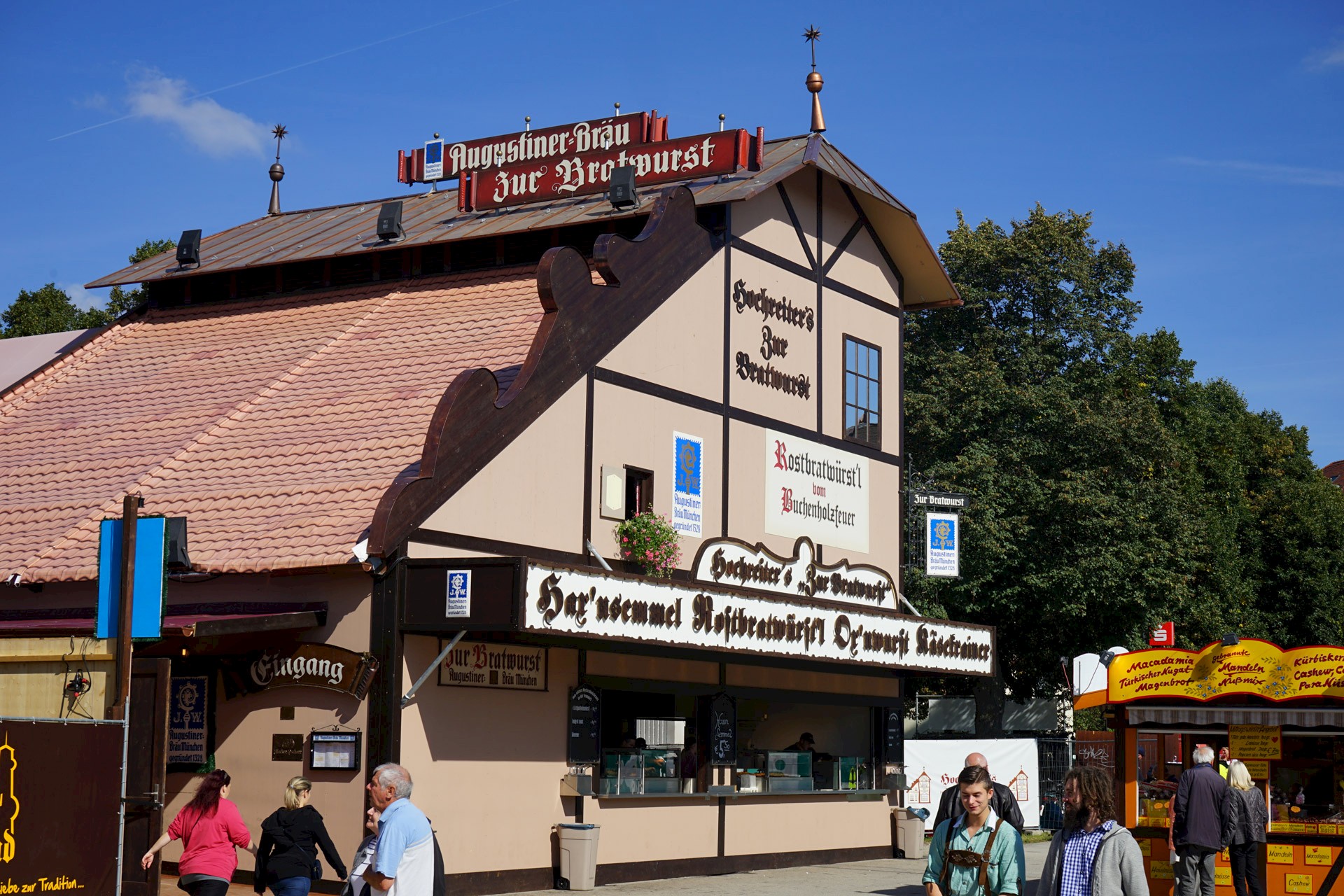 Optisch wohl eines der bemerkenswertesten Bierzelte, erinnert die Bratwurst an längst vergangene Tage der Münchner Bierzeltarchitektur. Auch wenn zumindest der vordere Teil des aktuellen Baus im Wesentlichen aus dem Jahr 2000 stammt, hat die Bratwurst als Nachfolger des Bratwurstglöckls eine sehr wechselhafte Geschichte hinter sich. Im Jahr 2000 grub der damalige Bratwurstglöckl-Wirt Michi Beck die Pläne des alten Nürnberger Bratwurstglöckls wieder aus und bezog damit samt schwarzgebautem Keller erstmals wieder die Wiesn. Nachdem das Zelt ab 1894 bereits auf der Wiesn stand, erlebte es nach der Insolvenz 2006 eine erneute Zwangspause.